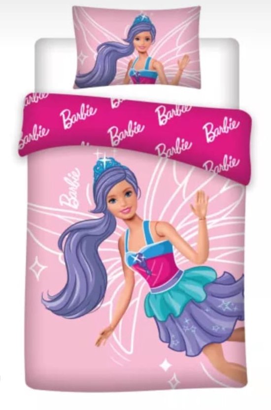 Bezorg jouw kindje een goede nachtrust met dit prachtige tweedelige dekbedovertrek van Barbie! Het overtrek komt in een frisse lichtroze kleur en is versierd met een prachtige opdruk van Barbie, omringd door bloemen, planten en vlinders: de bijpassende kussensloop is eveneens in dezelfde stijl voorzien van het welbekende logo. De vrolijke én luxueuze beddengoedset kan bovendien gemakkelijk in een ledikant of een klein kinderbed worden geplaatst en zal daarmee gegarandeerd een opvallend element zijn in de slaapkamer van jouw kleintje. Slaap zacht!