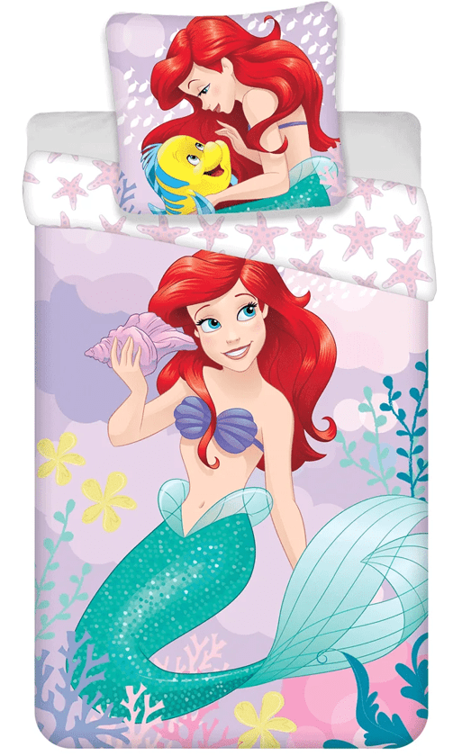 Disney Kleine Zeemeermin Dekbedovertrek, Ariël. Geweldig katoenen dekbedovertrek van de Kleine Zeemeermin. Ariel droomt van het leven op het land. Waar droom jij van? Dit kleurrijke dekbedovertrek is een echte blikvanger voor de slaapkamer. Een ideaal cadeau voor de fans van De Kleine Zeemeermin en leuk om te geven voor een verjaardag of de feestdagen. De overtrek is dubbelzijdig bedrukt, wat leuke opties geeft bij het opmaken van het bed en wordt geleverd met extra groot kussensloop.
