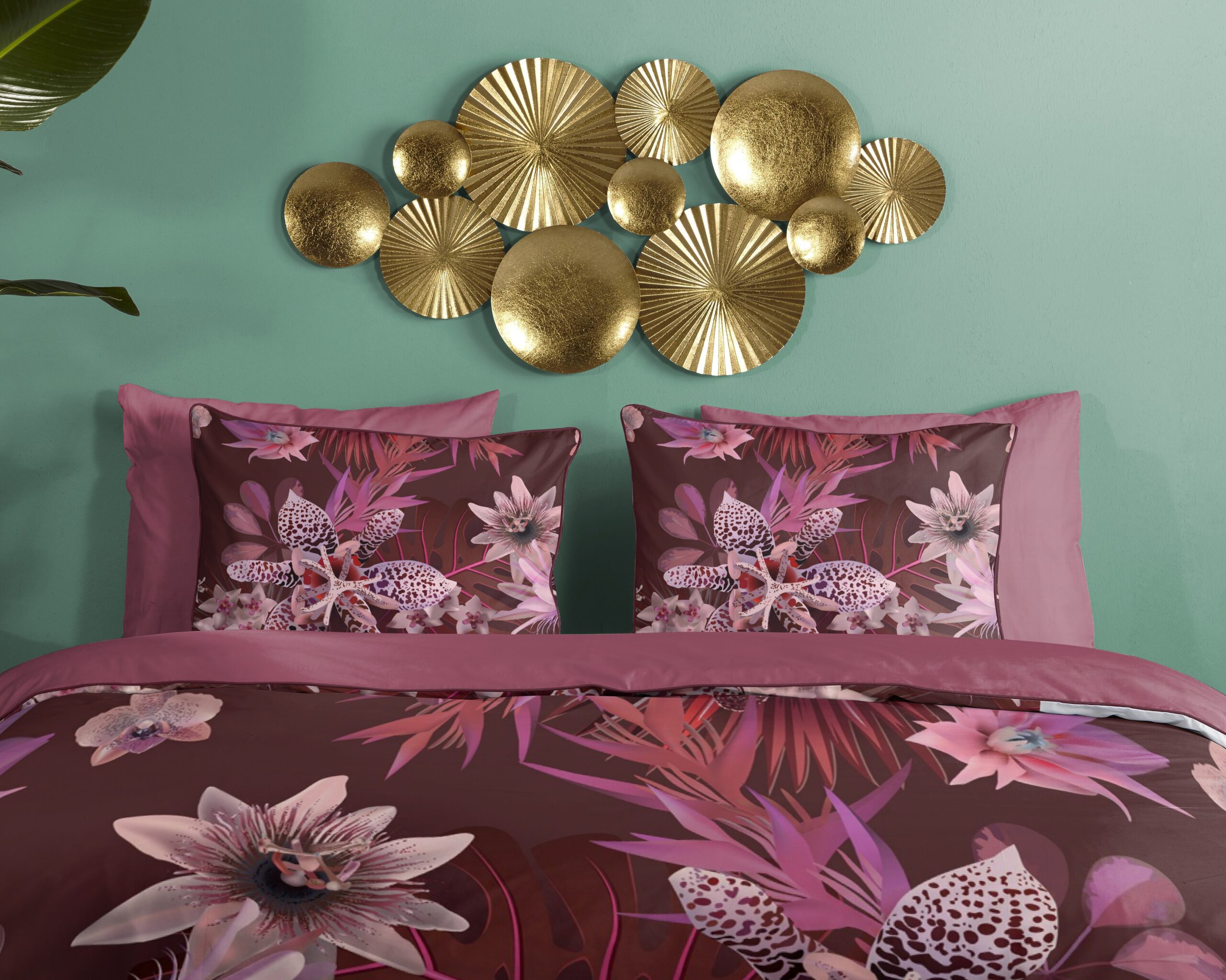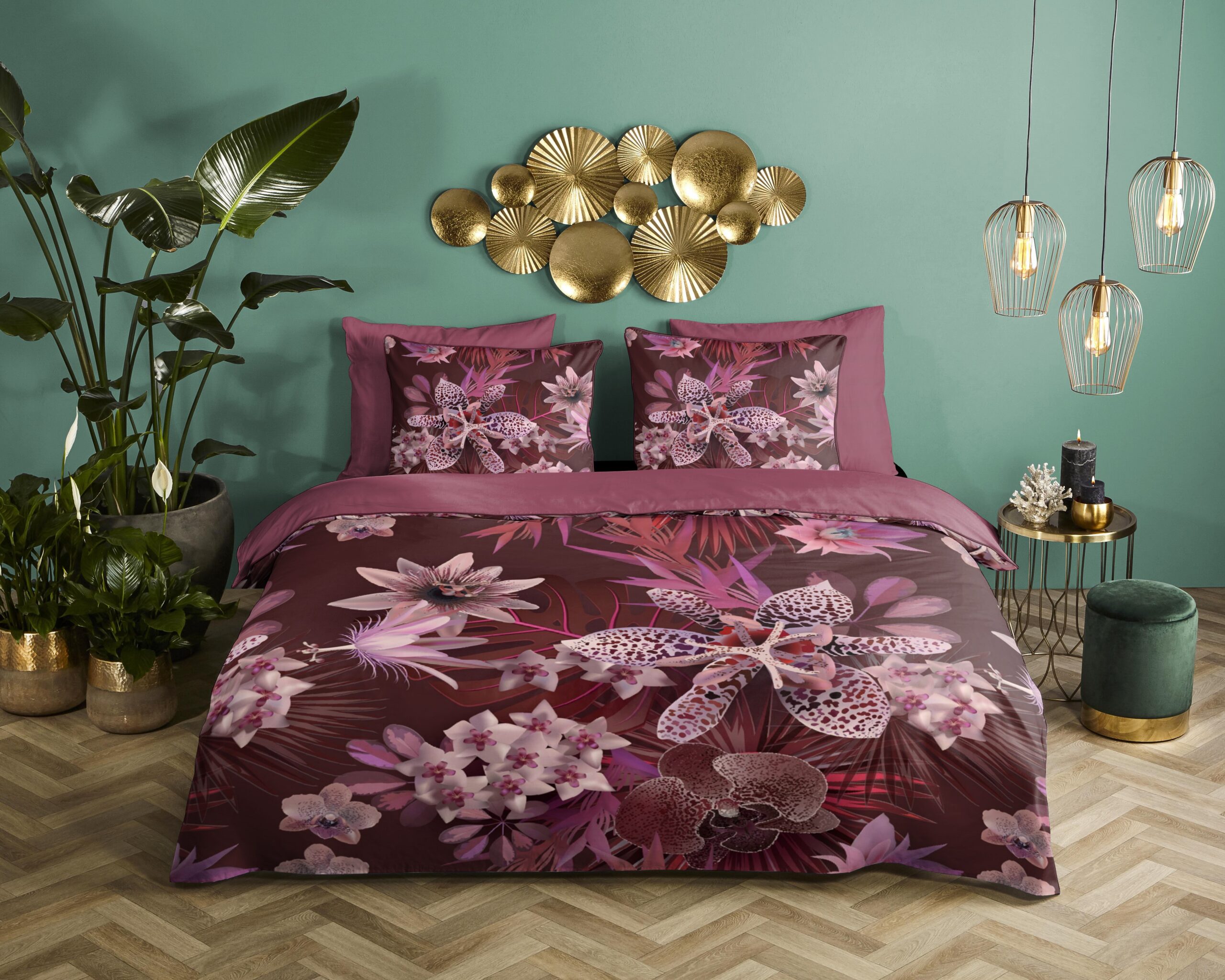 Satijnen dekbedovertrek “Farze” van Descanso. Dit stijlvolle dekbedovertrek met bloemen, in de kleur “Bordeaux” is gemaakt van 100% katoen-satijn. Descanso dekbedovertrekken zijn luxueus, stijlvol en elegant! Aan de achterkant van een Descanso dekbedovertrek zit altijd een mooie, bijpassende uni kleur. Dekbedovertrekken en kussenslopen van Descanso zijn rondom voorzien van een luxe bies/ piping in een bijpassende kleur. Een Descanso dekbedovertrek geeft een luxe uitstraling aan uw slaapkamer!