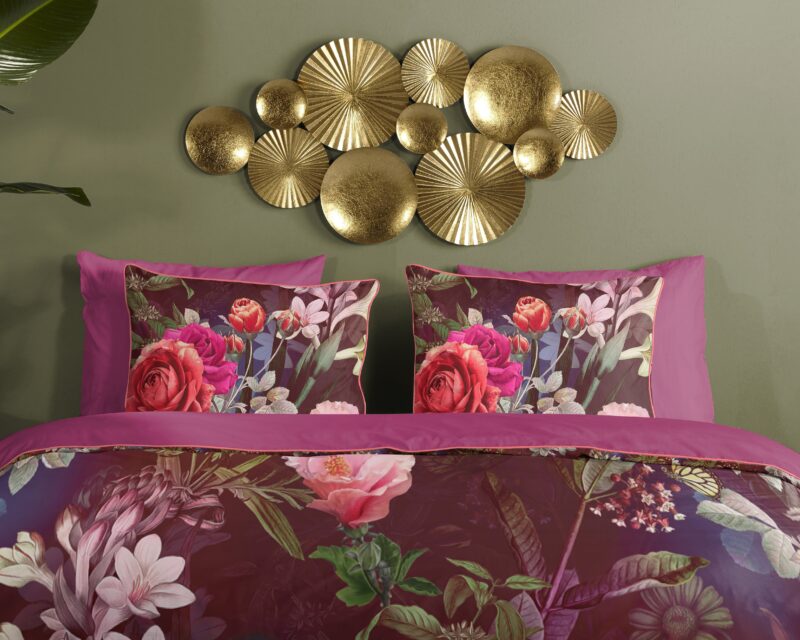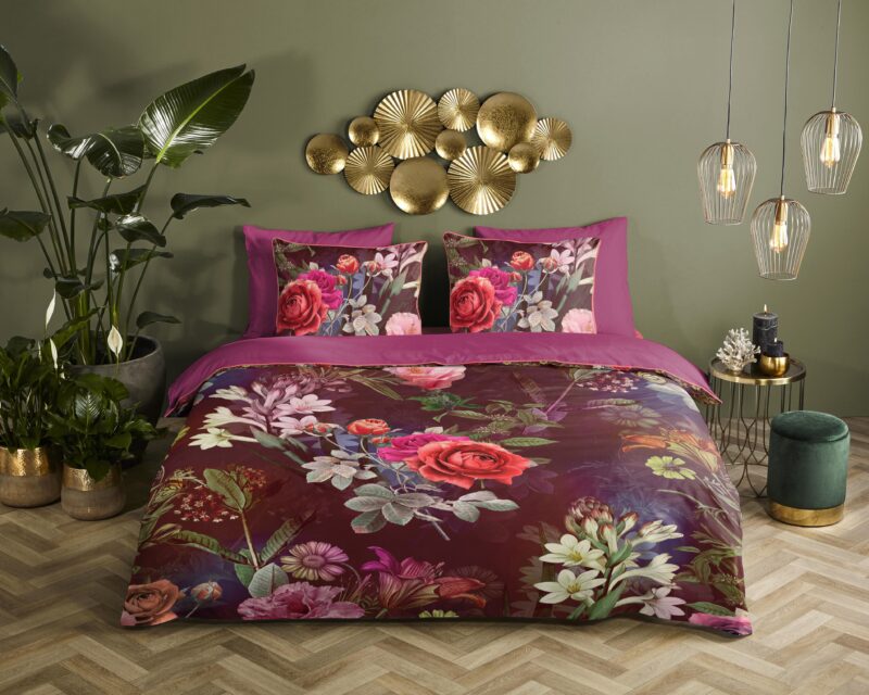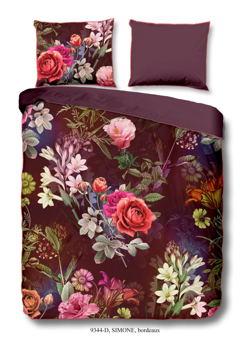 Satijnen dekbedovertrek “Simone” van Descanso. Dit stijlvolle dekbedovertrek met bloemen, in de kleur “Bordeaux” is gemaakt van 100% katoen-satijn. Descanso dekbedovertrekken zijn luxueus, stijlvol en elegant! Aan de achterkant van een Descanso dekbedovertrek zit altijd een mooie, bijpassende uni kleur. Dekbedovertrekken en kussenslopen van Descanso zijn rondom voorzien van een luxe bies/ piping in een bijpassende kleur. Een Descanso dekbedovertrek geeft een luxe uitstraling aan uw slaapkamer!