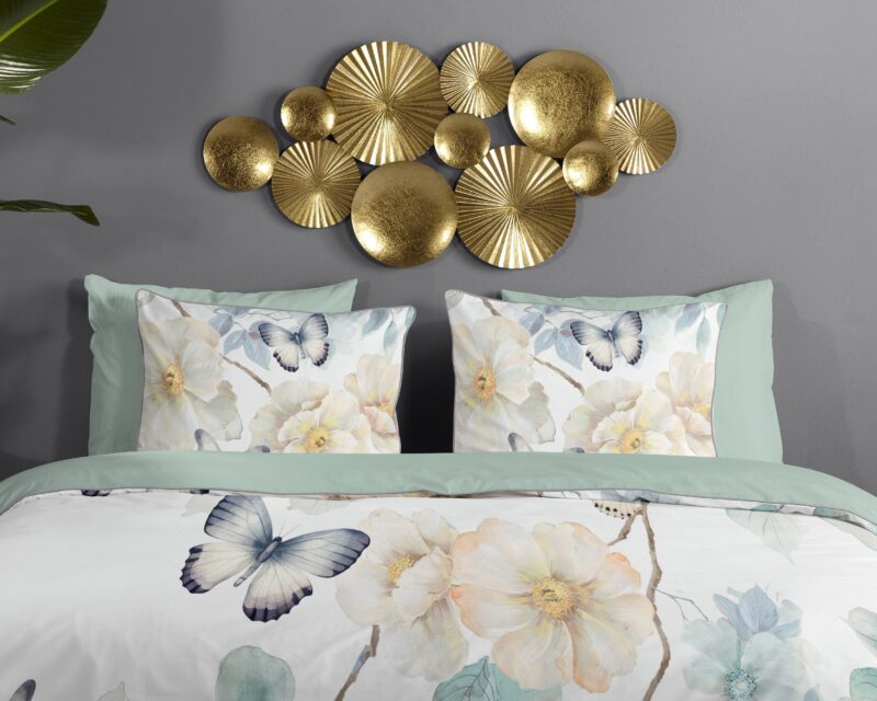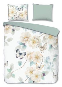 Descanso Dekbedovertrek “bloemen en vlinders” – Wit – (240×200/220 cm) – Katoen Satijn