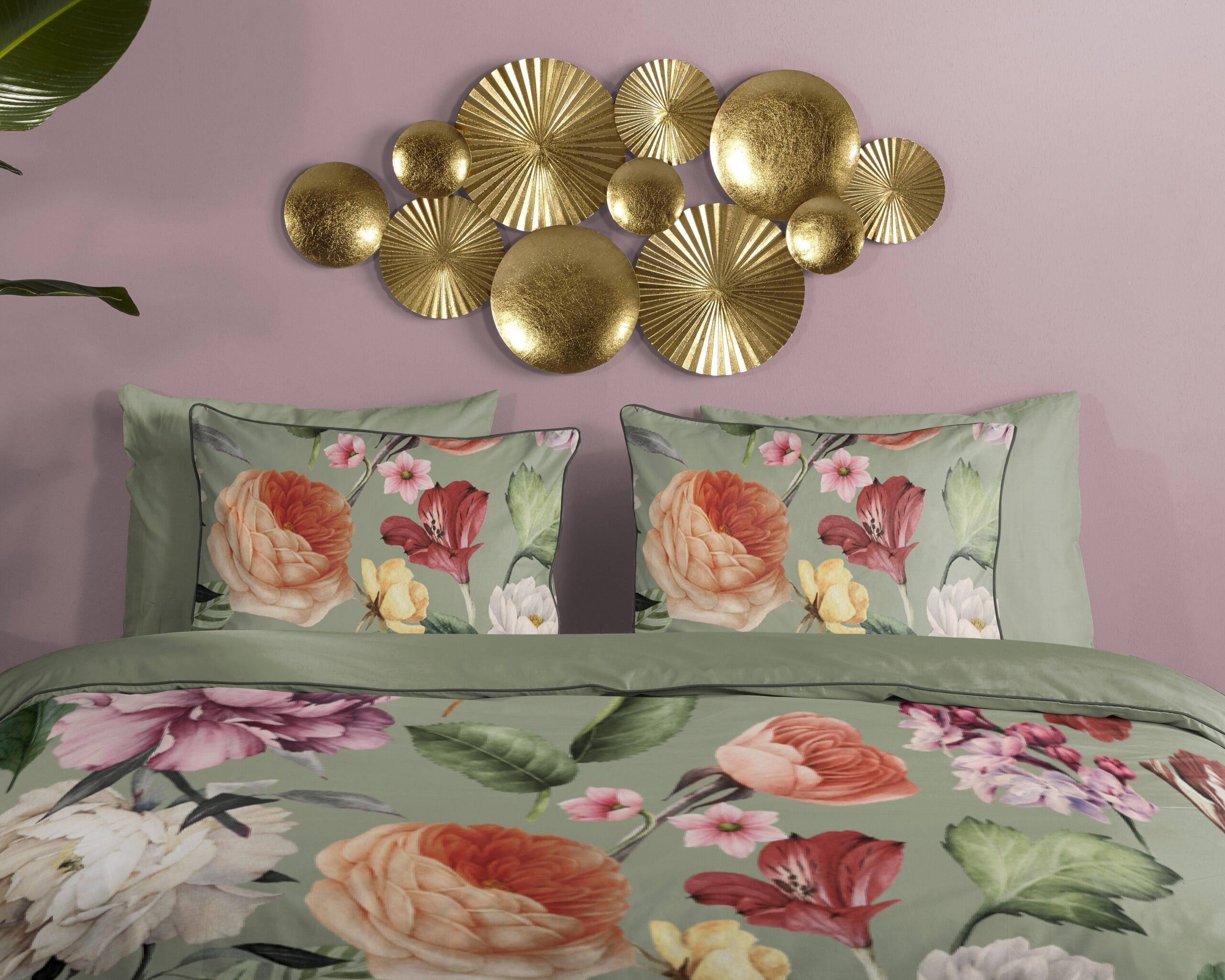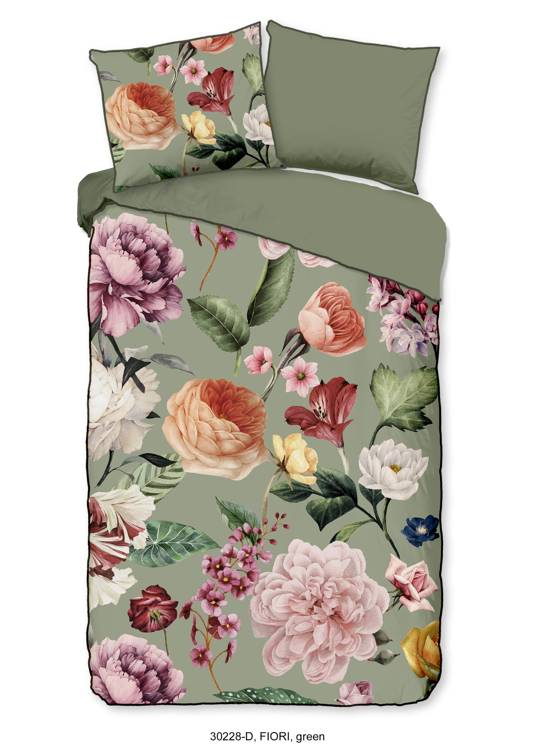 Satijnen dekbedovertrek “Fiori” van Descanso. Dit stijlvolle dekbedovertrek met bloemen, in de kleur “Groen” is gemaakt van 100% katoen-satijn. Descanso dekbedovertrekken zijn luxueus, stijlvol en elegant! Aan de achterkant van een Descanso dekbedovertrek zit altijd een mooie, bijpassende uni kleur. Dekbedovertrekken en kussenslopen van Descanso zijn rondom voorzien van een luxe bies/ piping in een bijpassende kleur. Een Descanso dekbedovertrek geeft een luxe uitstraling aan uw slaapkamer!