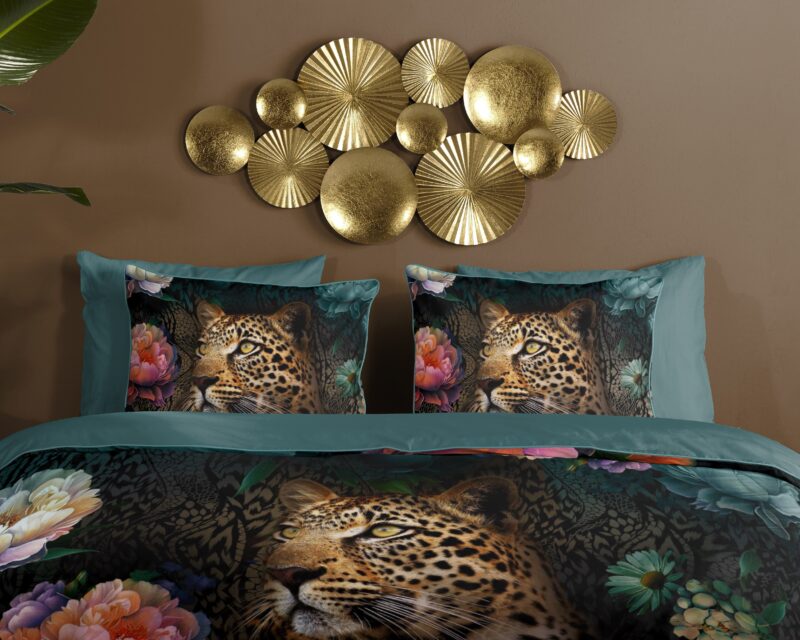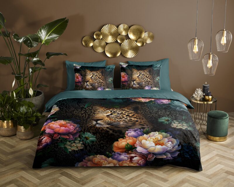 Descanso Dekbedovertrek “bloemen met een luipaard” – Multi – (200×200/220 cm) – Katoen Satijn