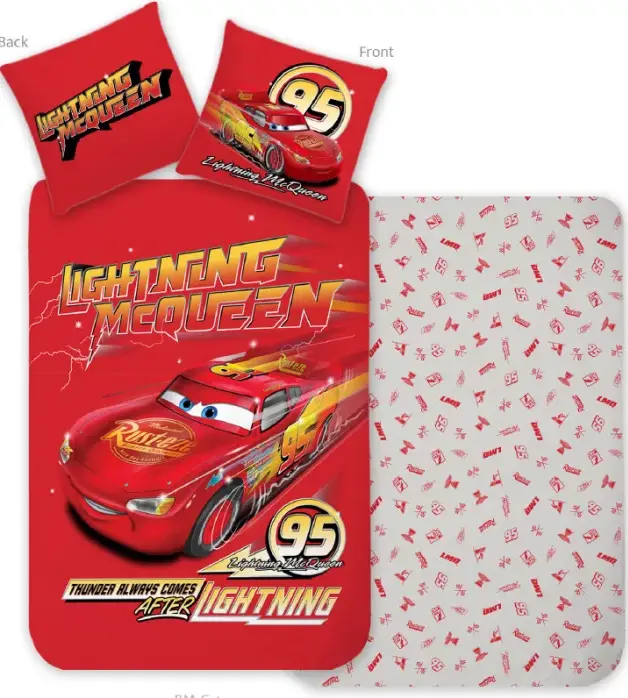Disney Cars Dekbedovertrek Lightning McQueen. Een fijn katoenen eenpersoons dekbedovertrek van de bekende Cars-serie. Lightning McQueen heeft een prominente plek gekregen op deze overtrek. De achterzijde van het dekbed heeft een leuk patroon van diverse Cars-auto’s. Er is bijpassend een hoeslaken te verkrijgen (apart te bestellen). Een geweldig cadeau om te geven voor een verjaardag of de feestdagen