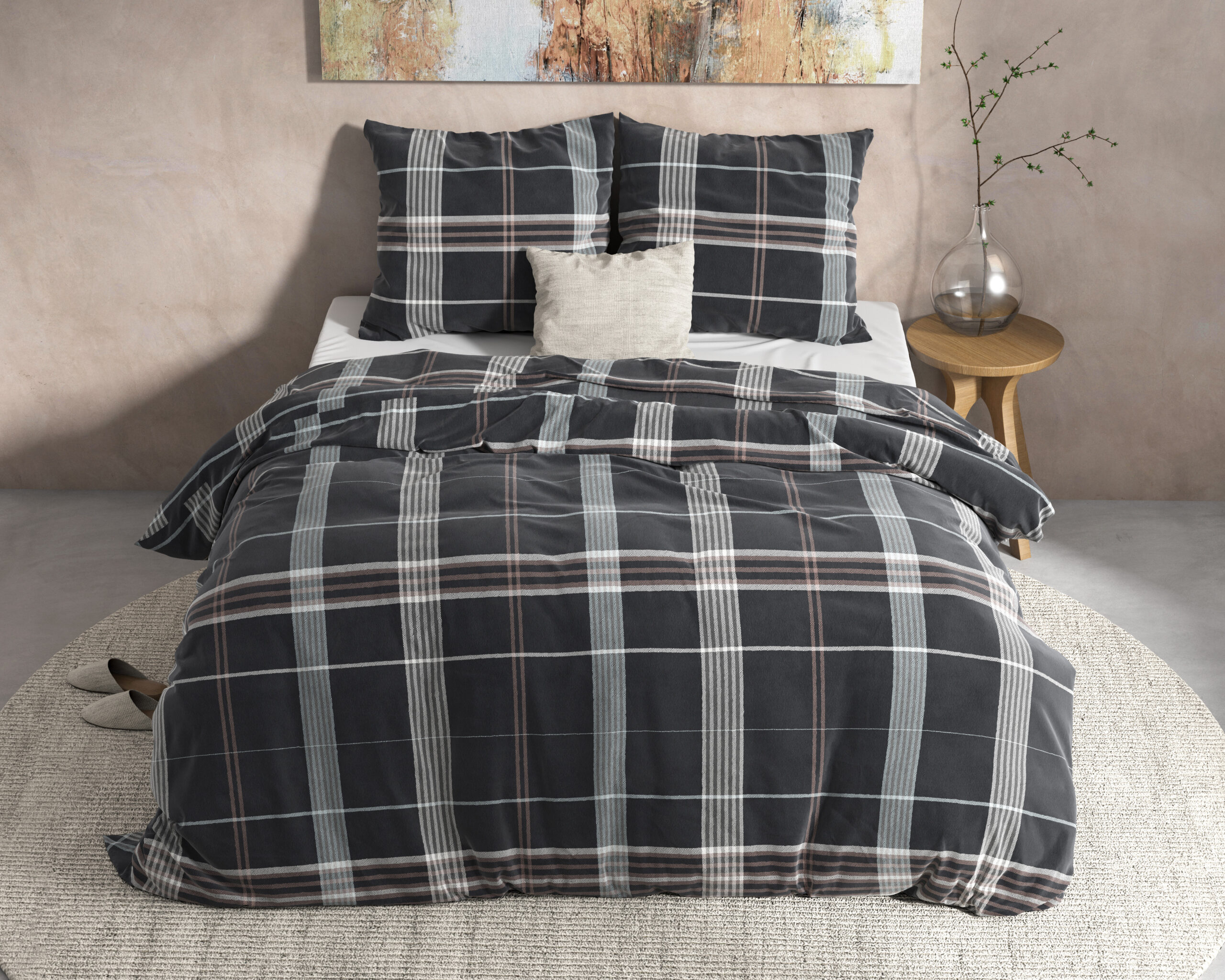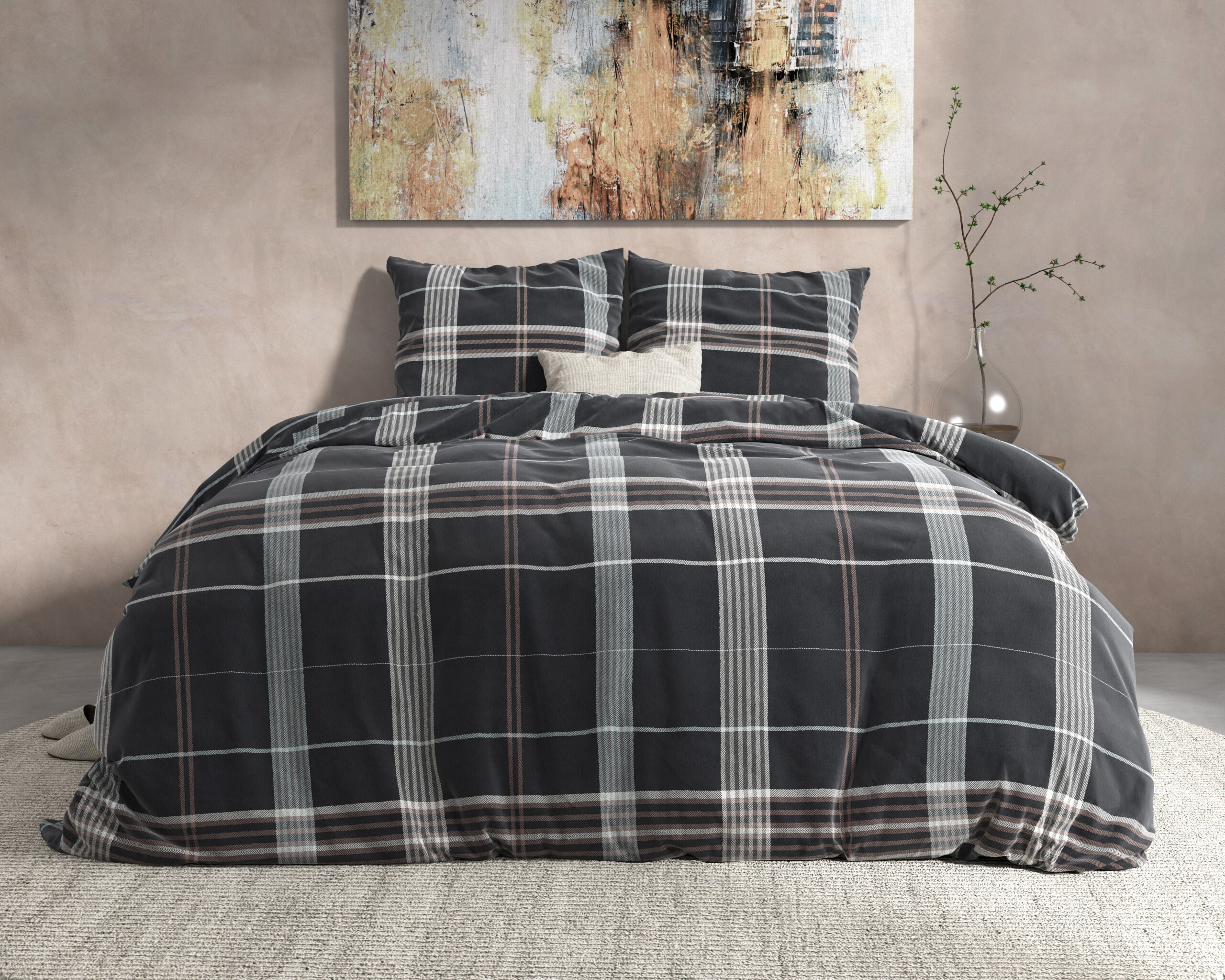 Dit dekbedovertrek Flanel Bruce van Dreamhouse is vervaardigd van 100% geruwd katoen (flanel) met 150 grams garen per m2. Het is hierdoor comfortabel, zacht, vochtabsorberend en goed luchtdoorlatend. Het beddengoed voelt extra fluwelig en zacht aan omdat het aan beide kanten geruwd is. Door het ruwen van de stof krijgt het namelijk een extra wollig en dik laagje. Flanel-katoen heeft een warmte-isolerend effect en past zich snel aan je lichaamstemperatuur aan.