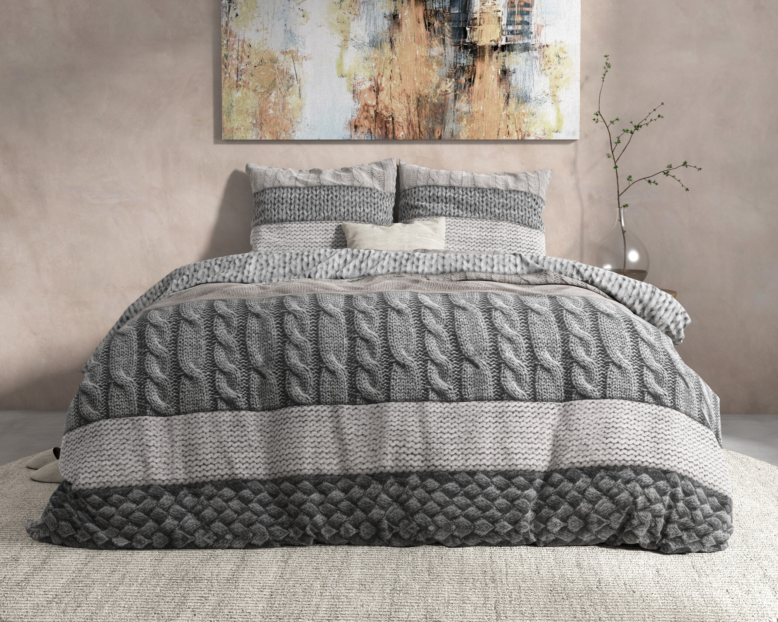 Voor een warme sfeer in de slaapkamer is dit Dreamhouse Flanel Elin-dekbedovertrek ideaal! Het dessin bestaat uit verschillende breipatronen in natuurlijke tinten. Het gebreide patroon in combinatie met de natuurlijke kleuren geeft de print een bijzonder effect. Het dessin loopt ook door op het meegeleverde kussensloop. Leuk te combineren met zachte sierkussentjes of een warme plaid! Dit dekbedovertrek heeft een totale lengte van 220 cm en handige drukknopen aan de onderzijde om het netjes af te sluiten.
