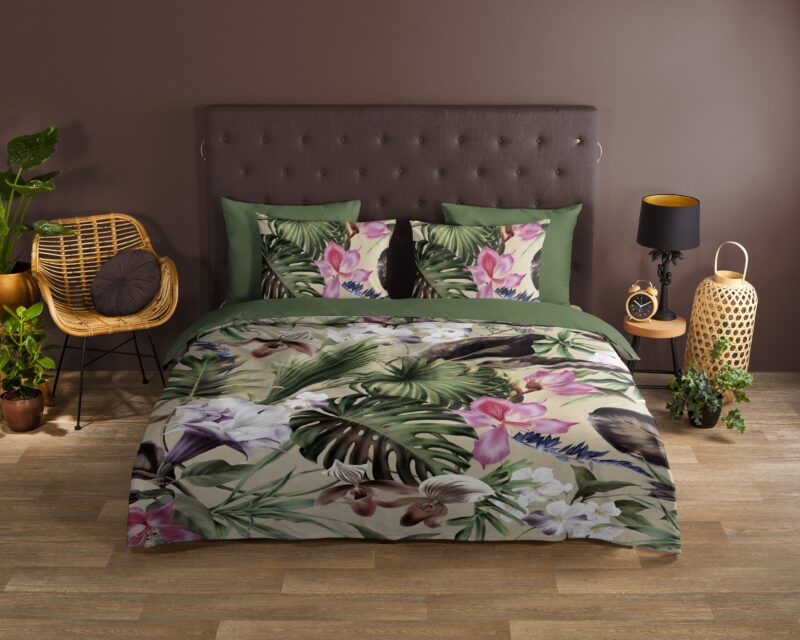 Dekbedovertrek “Irze” van Good Morning met bladeren, in de kleur “Groen” is gemaakt van 100% katoen. Deze kwaliteit is ademend, vochtabsorberend en voelt zacht en soepel aan. Dit mooie dekbedovertrek fleurt iedere slaapkamer op en is geschikt voor ieder jaargetijde. Het katoenen dekbedovertrek is heerlijk koel in de zomer en geeft warmte in de winter.