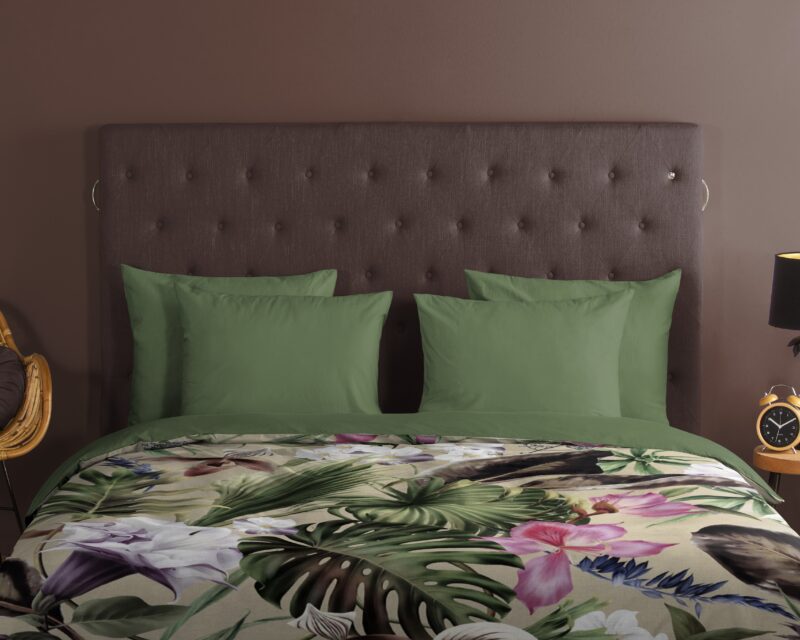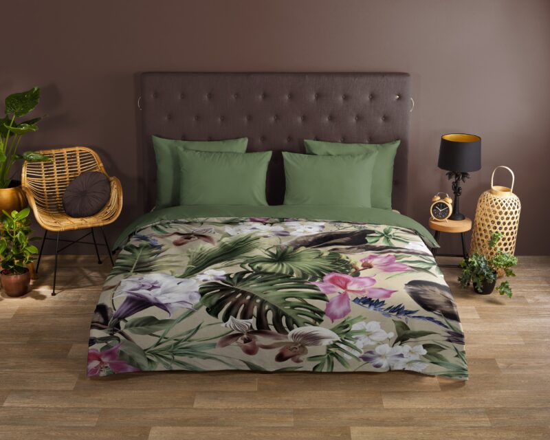 Dekbedovertrek “Irze” van Good Morning met bladeren, in de kleur “Groen” is gemaakt van 100% katoen. Deze kwaliteit is ademend, vochtabsorberend en voelt zacht en soepel aan. Dit mooie dekbedovertrek fleurt iedere slaapkamer op en is geschikt voor ieder jaargetijde. Het katoenen dekbedovertrek is heerlijk koel in de zomer en geeft warmte in de winter.