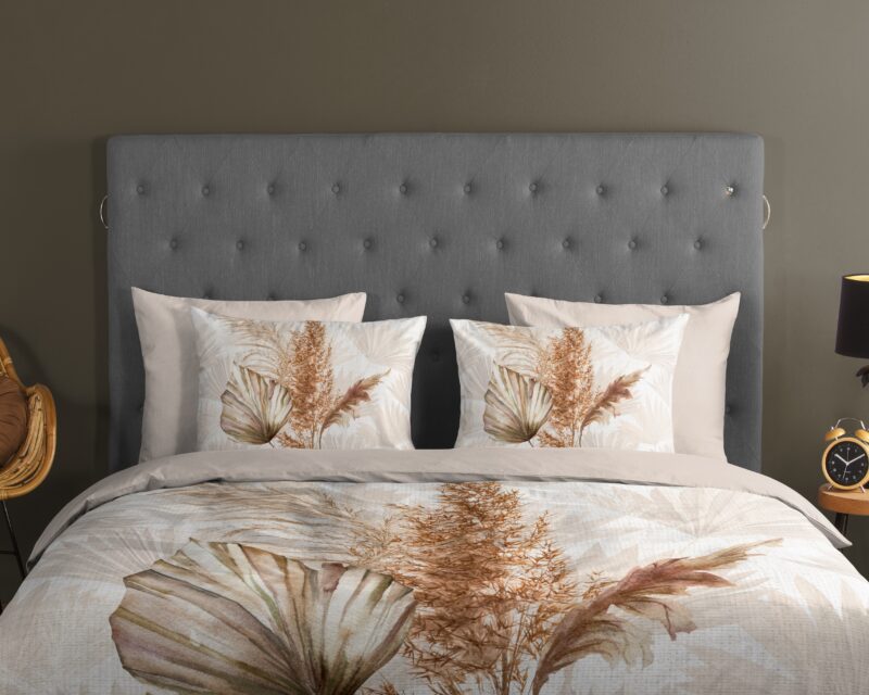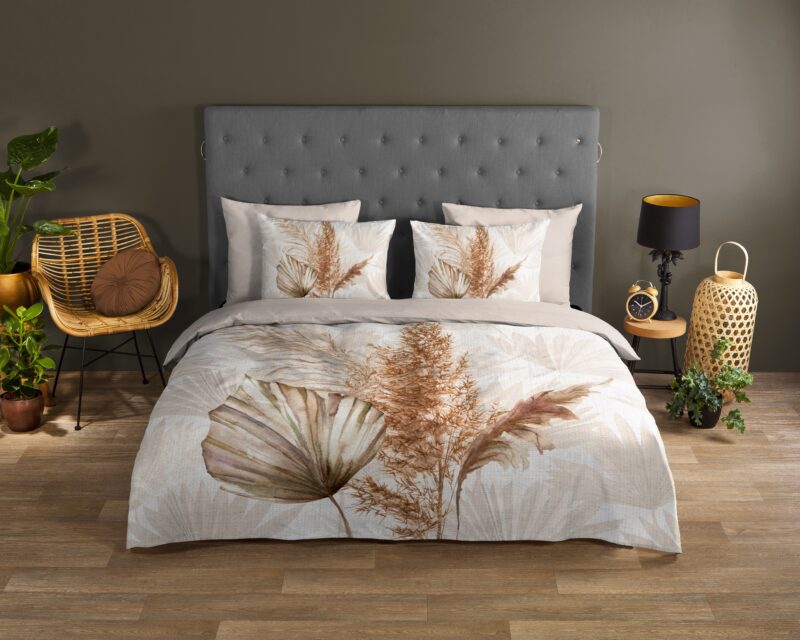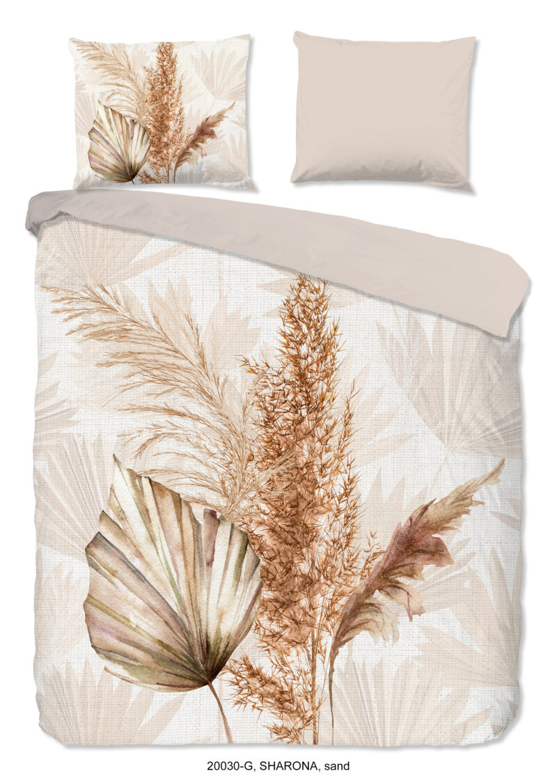 Dekbedovertrek “Sharona” van Good Morning met bladeren, in de kleur “Zand” is gemaakt van 100% katoen. Deze kwaliteit is ademend, vochtabsorberend en voelt zacht en soepel aan. Dit mooie dekbedovertrek fleurt iedere slaapkamer op en is geschikt voor ieder jaargetijde. Het katoenen dekbedovertrek is heerlijk koel in de zomer en geeft warmte in de winter.
