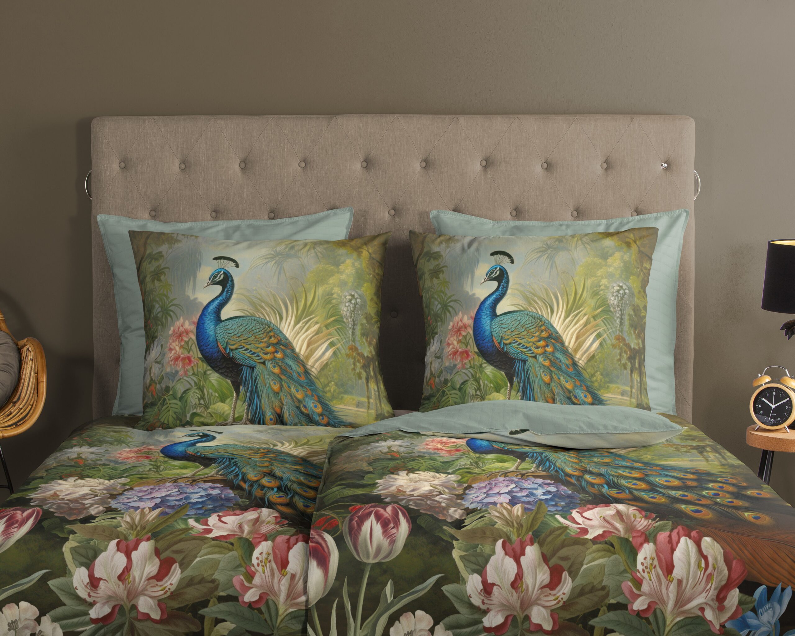 Dekbedovertrek “Esther” van Good Morning met bloemen en pauw, in de kleur “Multi” is gemaakt van 100% katoen. Deze kwaliteit is ademend, vochtabsorberend en voelt zacht en soepel aan. Dit mooie dekbedovertrek fleurt iedere slaapkamer op en is geschikt voor ieder jaargetijde. Het katoenen dekbedovertrek is heerlijk koel in de zomer en geeft warmte in de winter.