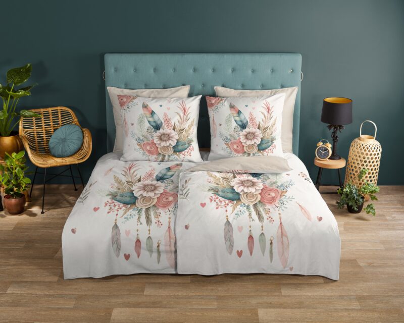 Dekbedovertrek “Videl” van Good Morning met bloemen en veren, in de kleur “Ecru” is gemaakt van 100% katoen. Deze kwaliteit is ademend, vochtabsorberend en voelt zacht en soepel aan. Dit mooie dekbedovertrek fleurt iedere slaapkamer op en is geschikt voor ieder jaargetijde. Het katoenen dekbedovertrek is heerlijk koel in de zomer en geeft warmte in de winter.