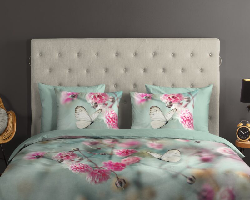 Good Morning Dekbedovertrek “bloemen en vlinders” – Mint – (200×200/220 cm) – Katoen