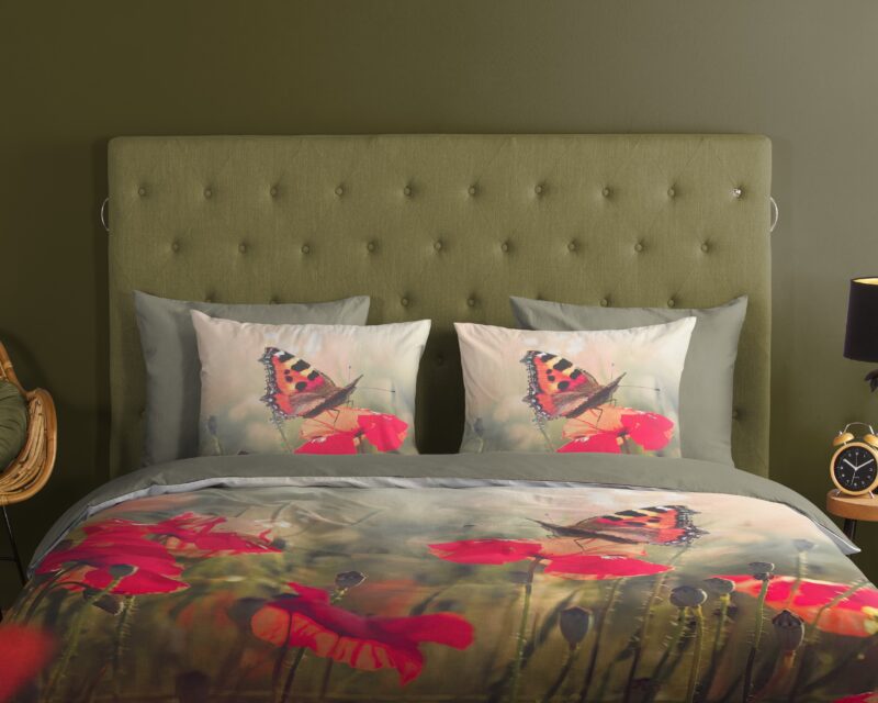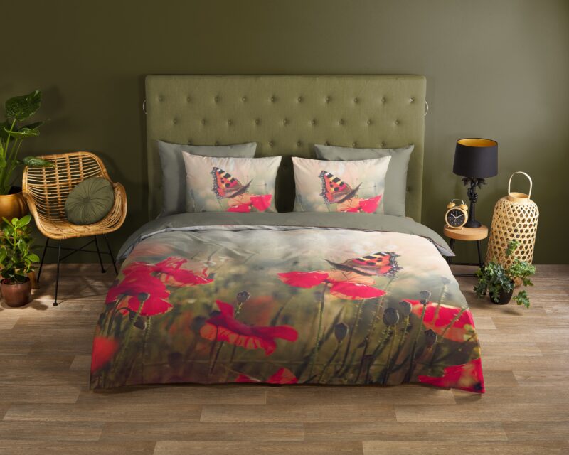 Dekbedovertrek “Poppies” van Good Morning met bloemen en vlinders, in de kleur “Multi” is gemaakt van 100% katoen. Deze kwaliteit is ademend, vochtabsorberend en voelt zacht en soepel aan. Dit mooie dekbedovertrek fleurt iedere slaapkamer op en is geschikt voor ieder jaargetijde. Het katoenen dekbedovertrek is heerlijk koel in de zomer en geeft warmte in de winter.