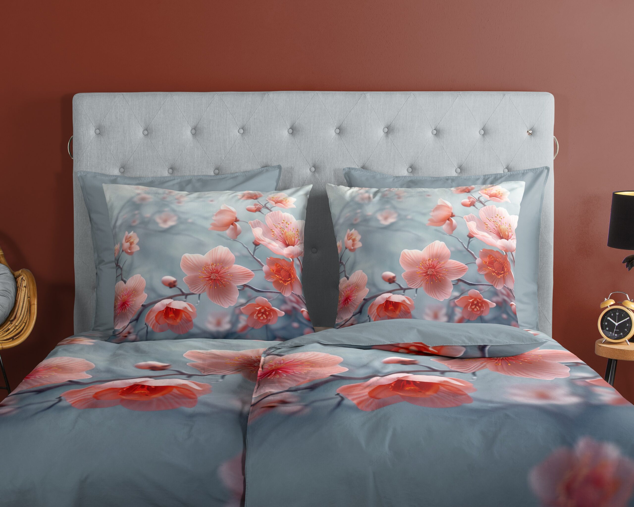 Good Morning Dekbedovertrek “bloemen” – Grijs – (135×200 cm) – Katoen