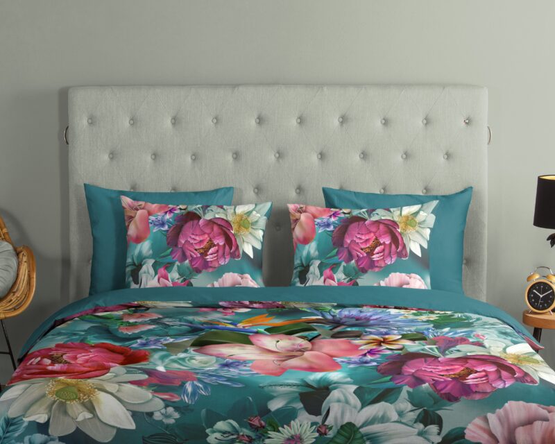 Good Morning Dekbedovertrek “bloemen” – Petrol – (240×200/220 cm) – Katoen
