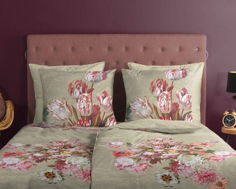 Good Morning Dekbedovertrek “bloemen” – Zand – (200×200 cm) – Katoen