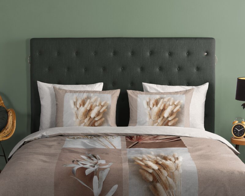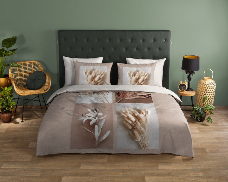 Dekbedovertrek “Kami” van Good Morning met droog bloemen, in de kleur “Zand” is gemaakt van 100% katoen. Deze kwaliteit is ademend, vochtabsorberend en voelt zacht en soepel aan. Dit mooie dekbedovertrek fleurt iedere slaapkamer op en is geschikt voor ieder jaargetijde. Het katoenen dekbedovertrek is heerlijk koel in de zomer en geeft warmte in de winter.