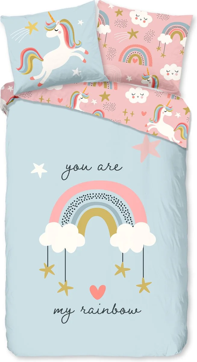 Kinderdekbedovertrek “Unicorn” van Good Morning met eenhoorn, in de kleur “Multi” is gemaakt van 100% katoen. Deze kwaliteit is ademend, vochtabsorberend en voelt zacht en soepel aan. Dit leuke kinderdekbedovertrek is een toevoeging aan iedere kinderkamer en is geschikt voor ieder jaargetijde. Het katoenen dekbedovertrek is heerlijk koel in de zomer en geeft warmte in de winter.