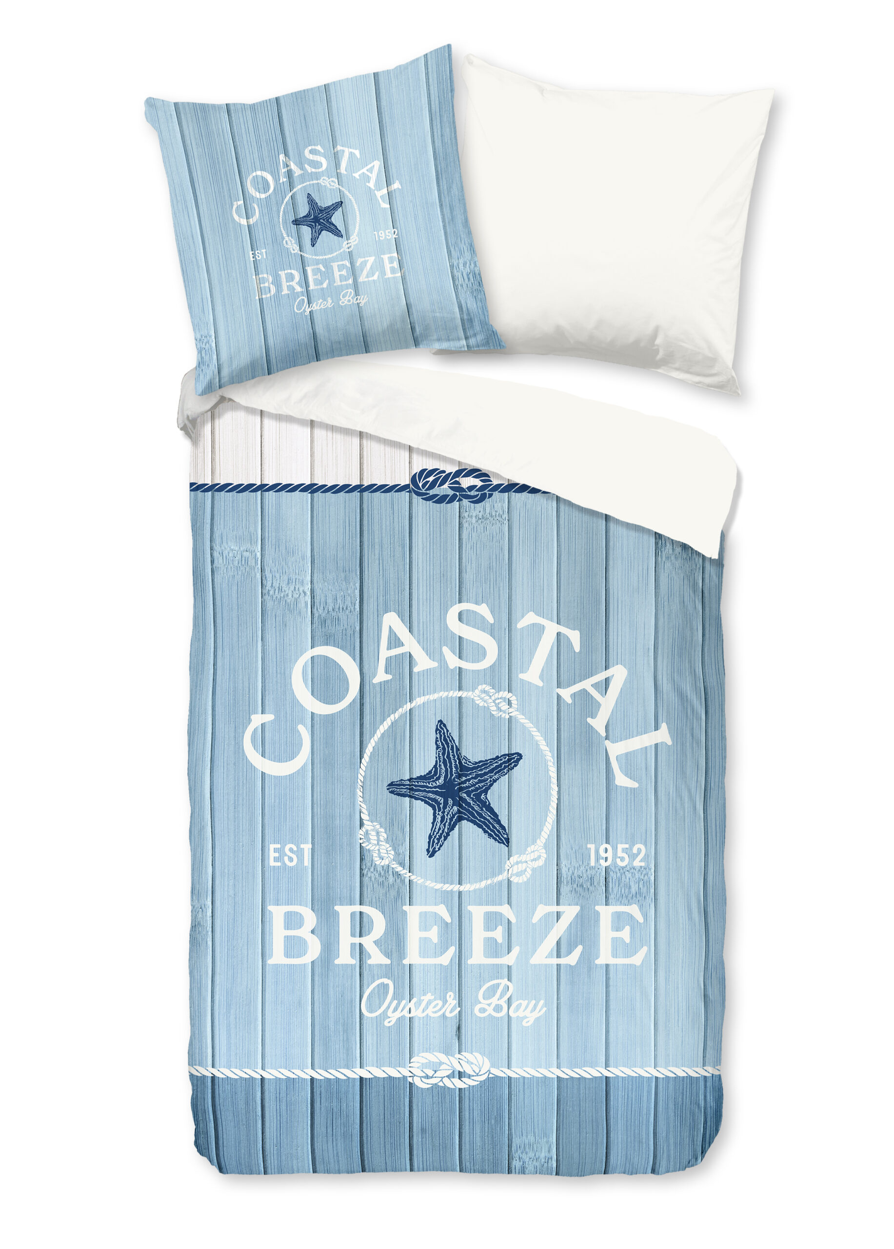 Good Morning Dekbedovertrek "Houten planken/ maritiem" - Blauw - (135x200 cm) - Katoen