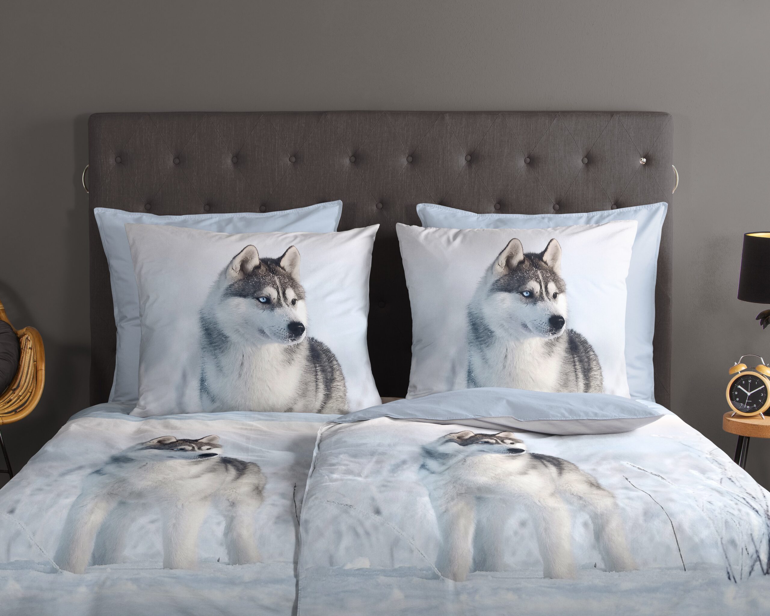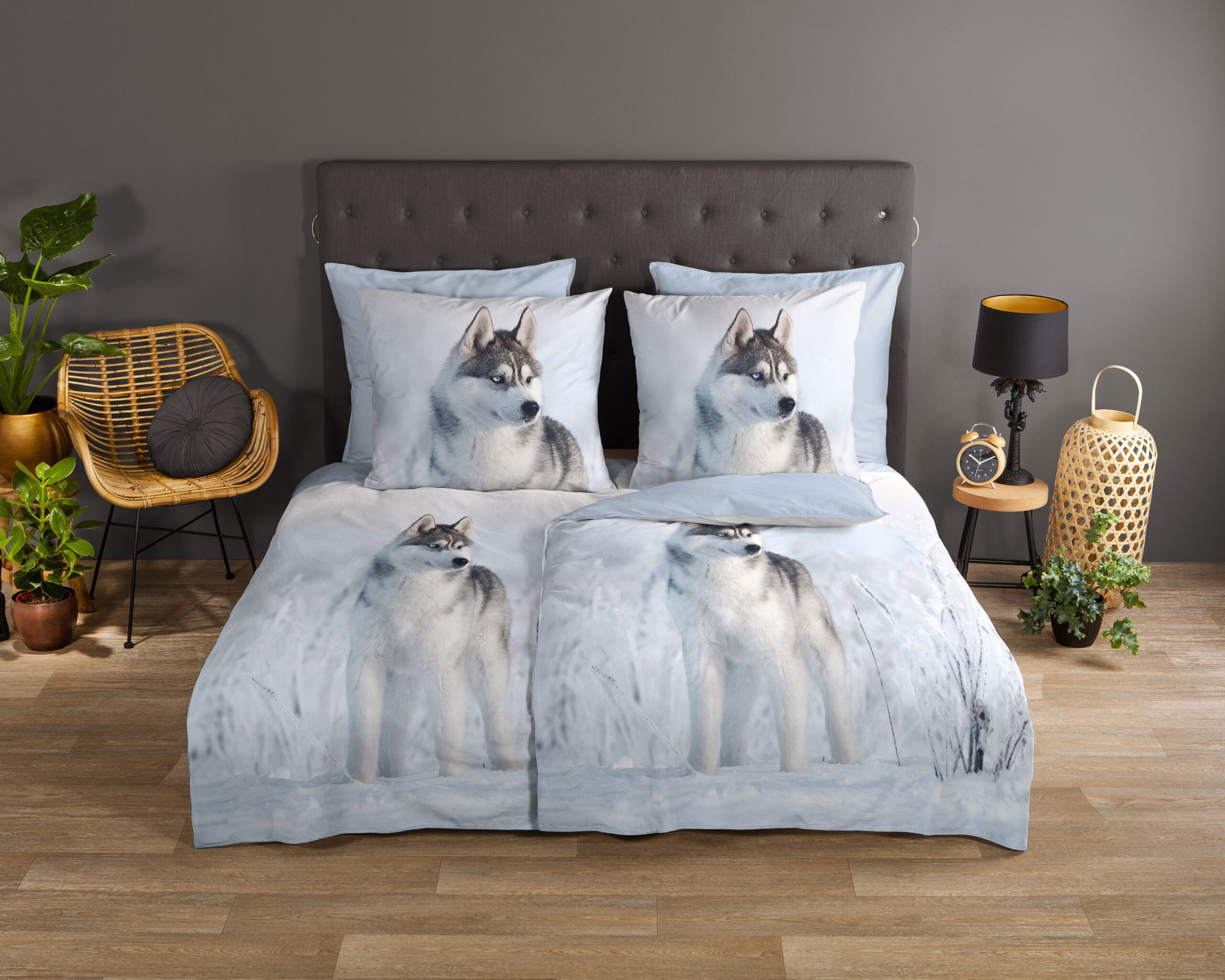 Dekbedovertrek “Sachar” van Good Morning met husky hond, in de kleur “Blauw” is gemaakt van 100% katoen. Deze kwaliteit is ademend, vochtabsorberend en voelt zacht en soepel aan. Dit mooie dekbedovertrek fleurt iedere slaapkamer op en is geschikt voor ieder jaargetijde. Het katoenen dekbedovertrek is heerlijk koel in de zomer en geeft warmte in de winter.