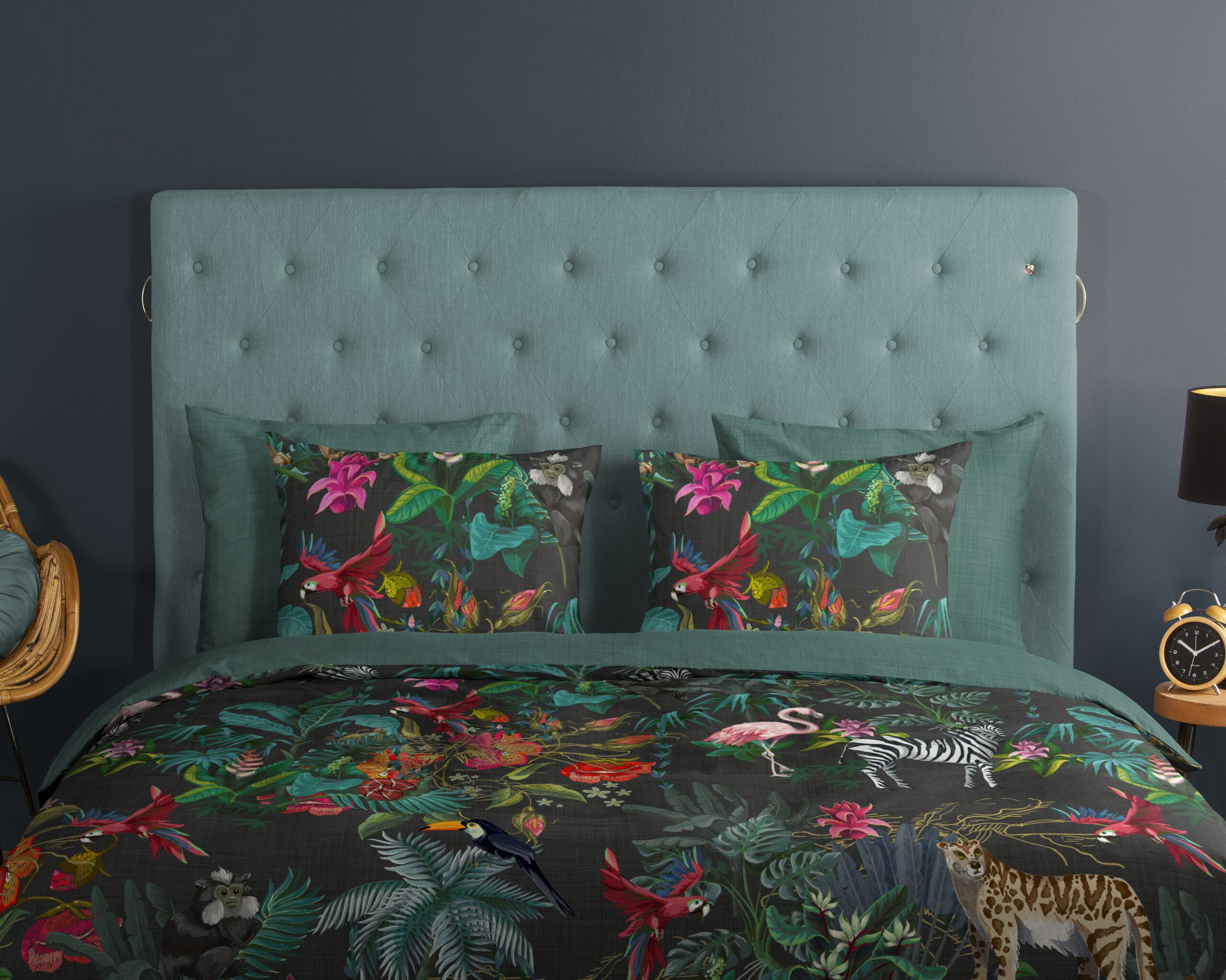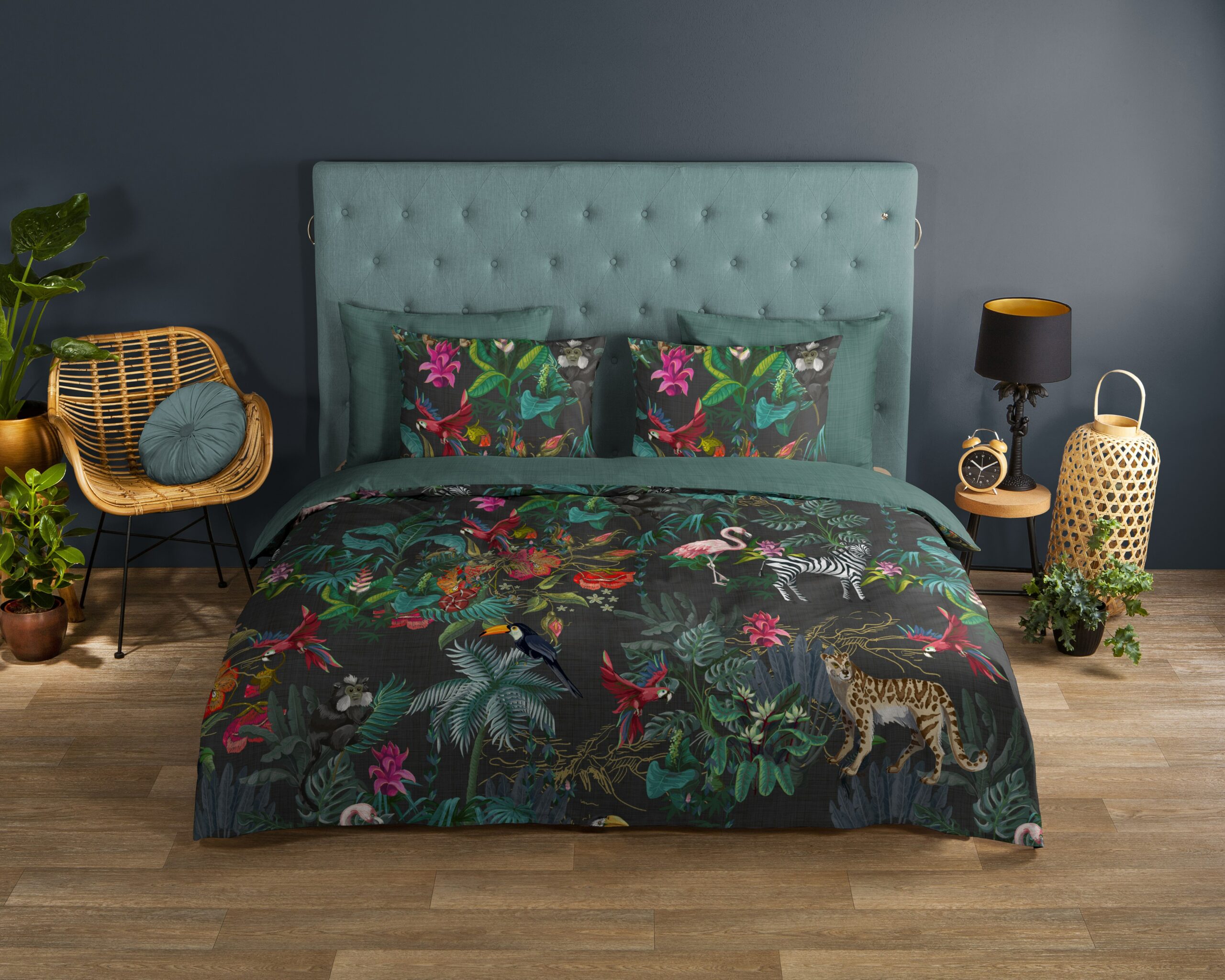 Dekbedovertrek “Funky” van Good Morning met jungleprint, in de kleur “Multi” is gemaakt van 100% katoen. Deze kwaliteit is ademend, vochtabsorberend en voelt zacht en soepel aan. Dit mooie dekbedovertrek fleurt iedere slaapkamer op en is geschikt voor ieder jaargetijde. Het katoenen dekbedovertrek is heerlijk koel in de zomer en geeft warmte in de winter.