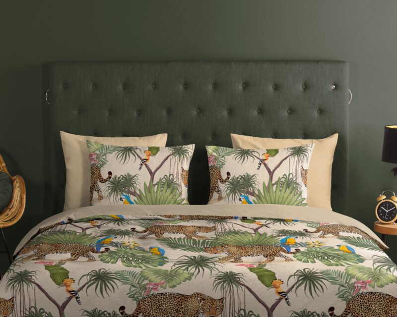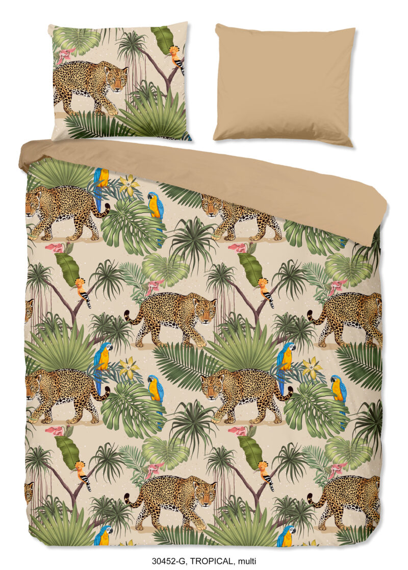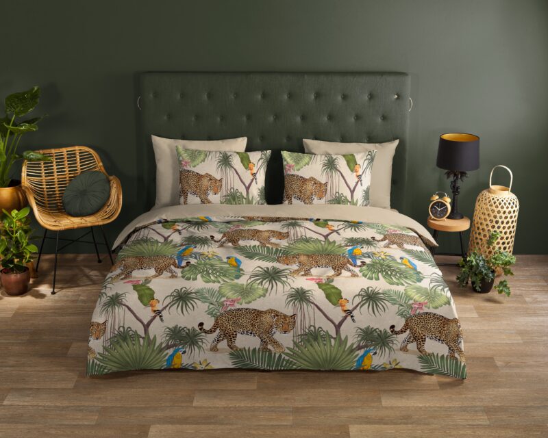 Dekbedovertrek “Tropical” van Good Morning met luipaard met bladeren, in de kleur “Zand” is gemaakt van 100% katoen. Deze kwaliteit is ademend, vochtabsorberend en voelt zacht en soepel aan. Dit mooie dekbedovertrek fleurt iedere slaapkamer op en is geschikt voor ieder jaargetijde. Het katoenen dekbedovertrek is heerlijk koel in de zomer en geeft warmte in de winter.
