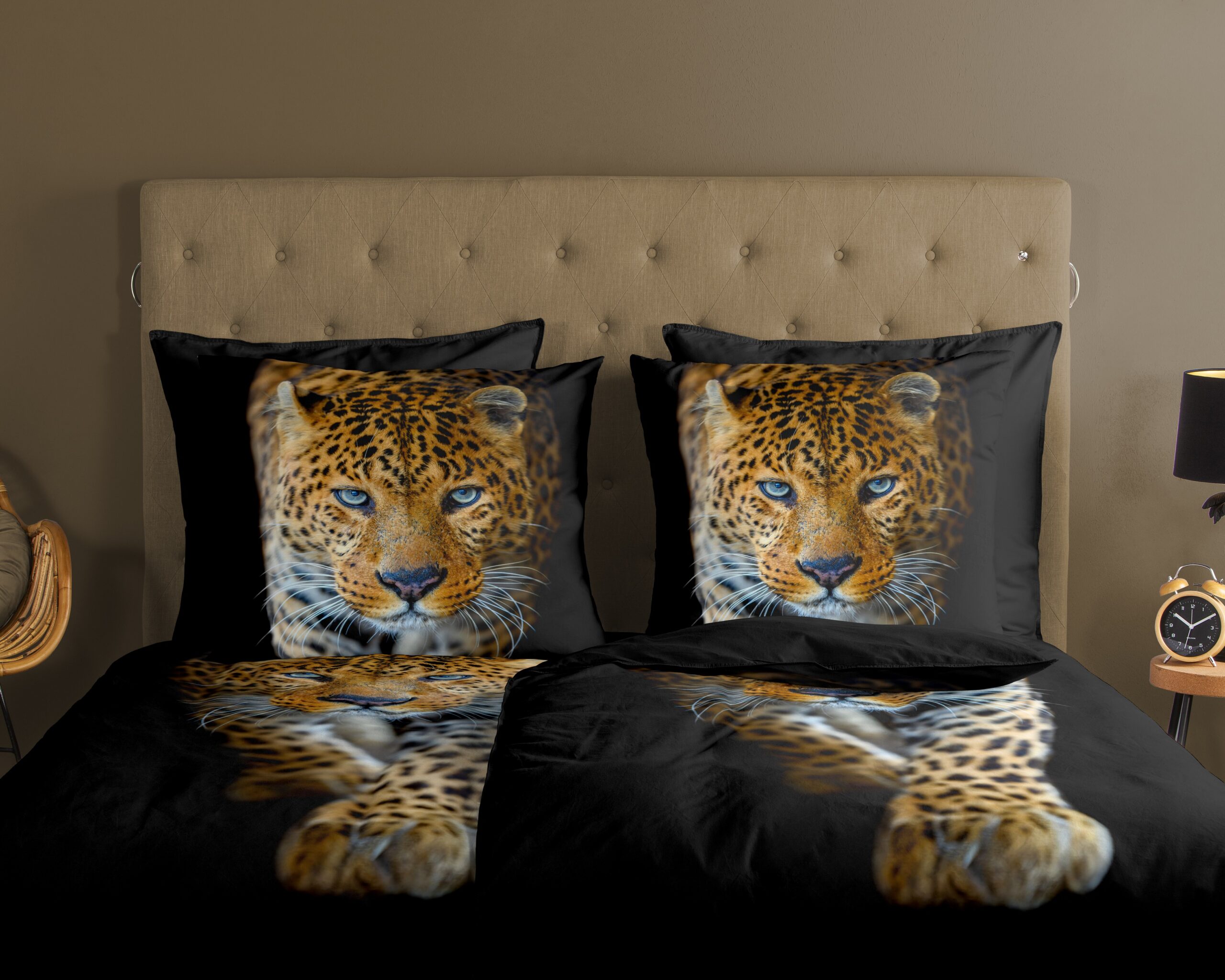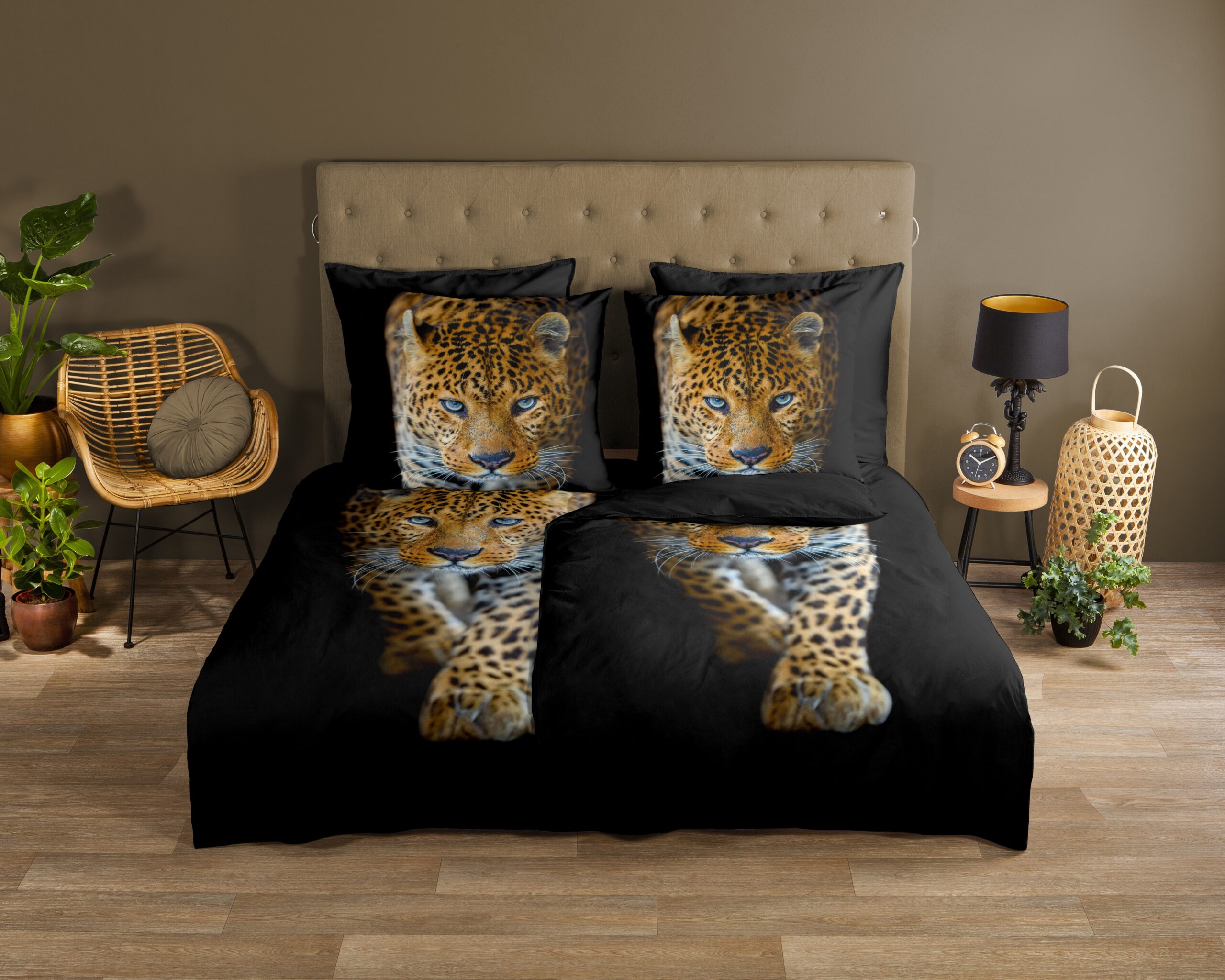 Dekbedovertrek “Bonn” van Good Morning met Luipaard, in de kleur “Zwart” is gemaakt van 100% katoen. Deze kwaliteit is ademend, vochtabsorberend en voelt zacht en soepel aan. Dit mooie dekbedovertrek fleurt iedere slaapkamer op en is geschikt voor ieder jaargetijde. Het katoenen dekbedovertrek is heerlijk koel in de zomer en geeft warmte in de winter.