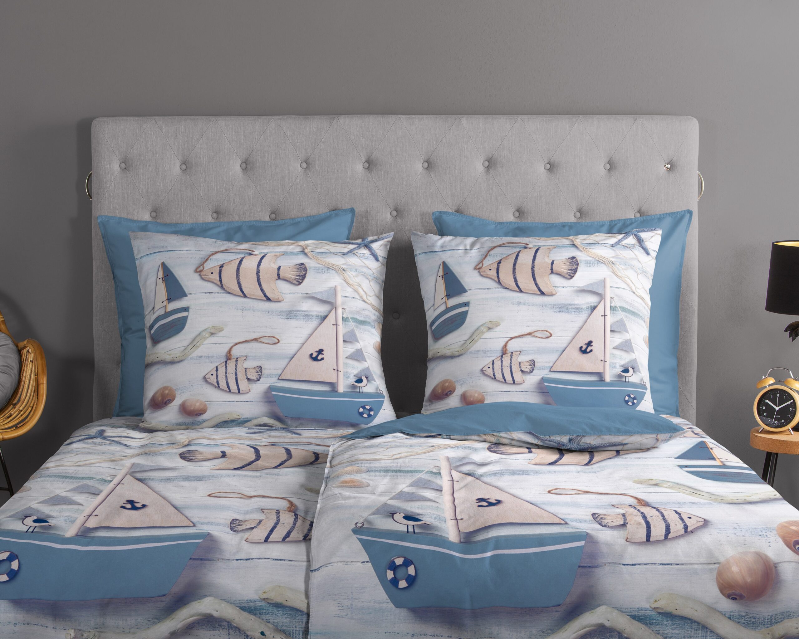 Dekbedovertrek “Maritim” van Good Morning met maritiem, in de kleur “Blauw” is gemaakt van 100% katoen. Deze kwaliteit is ademend, vochtabsorberend en voelt zacht en soepel aan. Dit mooie dekbedovertrek fleurt iedere slaapkamer op en is geschikt voor ieder jaargetijde. Het katoenen dekbedovertrek is heerlijk koel in de zomer en geeft warmte in de winter.