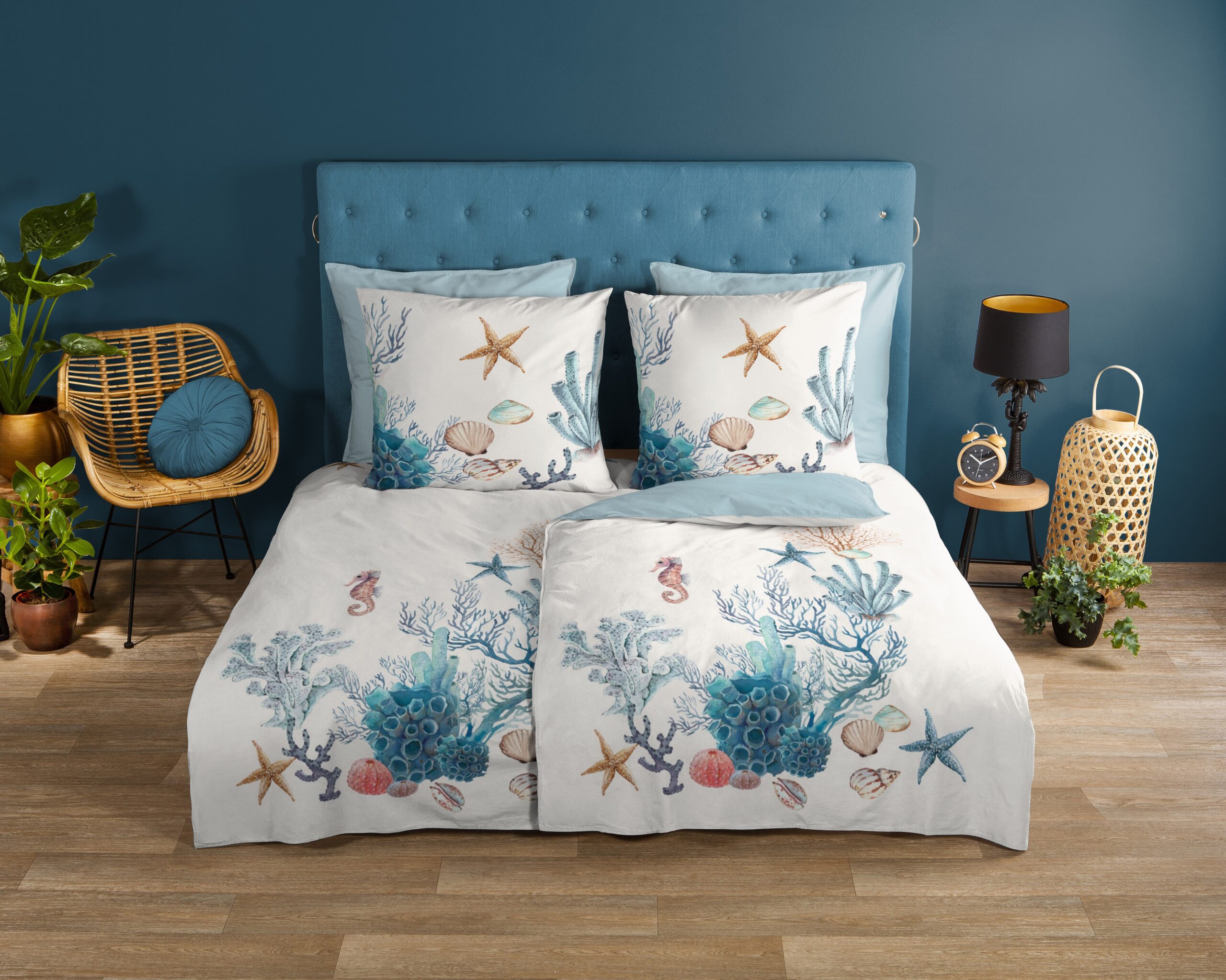 Dekbedovertrek “Reine” van Good Morning met maritiem, in de kleur “Wit” is gemaakt van 100% katoen. Deze kwaliteit is ademend, vochtabsorberend en voelt zacht en soepel aan. Dit mooie dekbedovertrek fleurt iedere slaapkamer op en is geschikt voor ieder jaargetijde. Het katoenen dekbedovertrek is heerlijk koel in de zomer en geeft warmte in de winter.