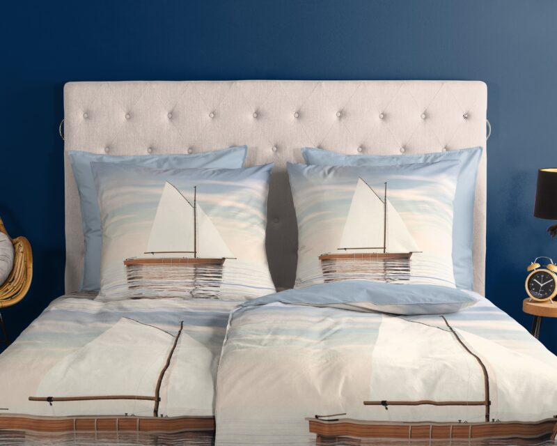 Dekbedovertrek “Meri” van Good Morning met maritiem/ zeilboot, in de kleur “Blauw” is gemaakt van 100% katoen. Deze kwaliteit is ademend, vochtabsorberend en voelt zacht en soepel aan. Dit mooie dekbedovertrek fleurt iedere slaapkamer op en is geschikt voor ieder jaargetijde. Het katoenen dekbedovertrek is heerlijk koel in de zomer en geeft warmte in de winter.