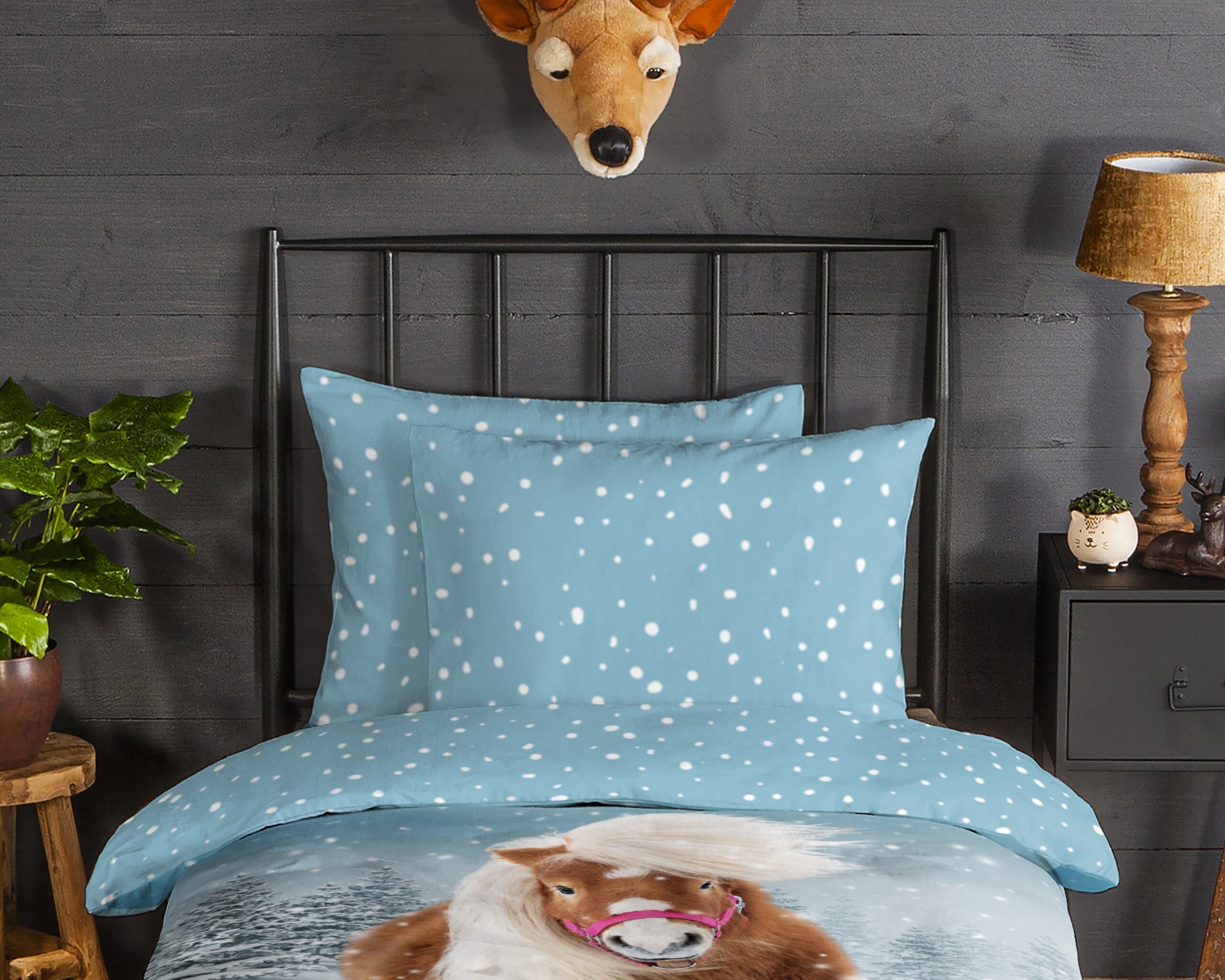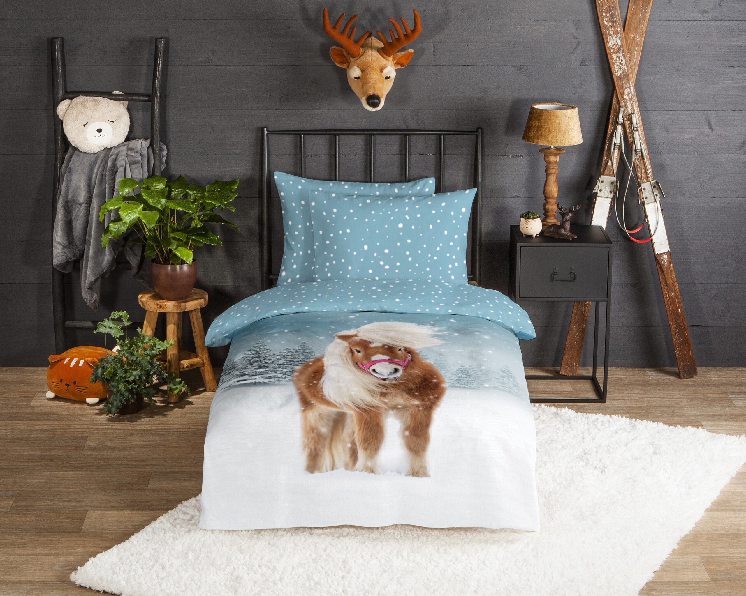 Good Morning Dekbedovertrek "paard in de sneeuw" - Multi - (140x200 cm) - Katoen Flanel