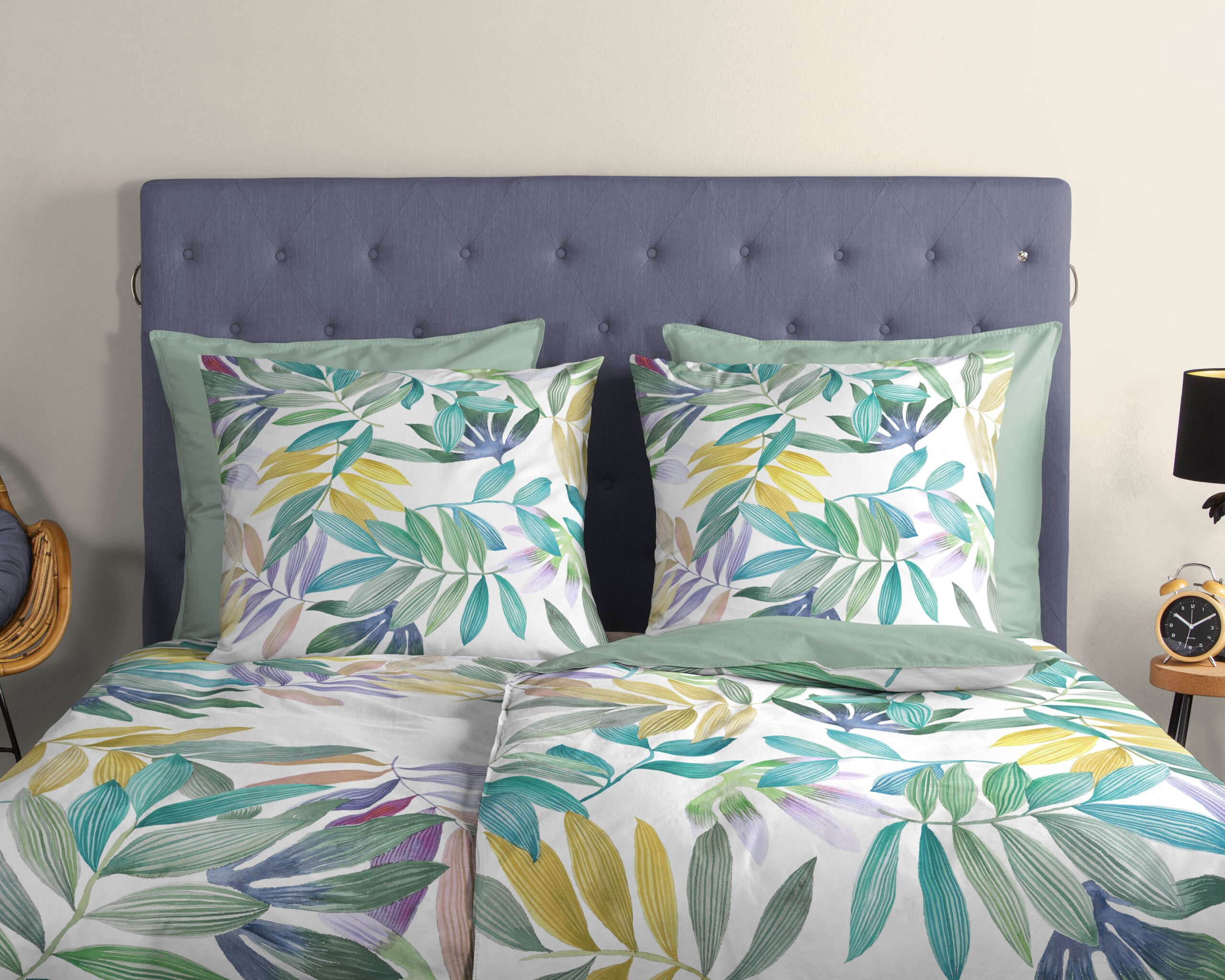 Dekbedovertrek “Marcus” van Good Morning met palmbladeren, in de kleur “Multi” is gemaakt van 100% katoen. Deze kwaliteit is ademend, vochtabsorberend en voelt zacht en soepel aan. Dit mooie dekbedovertrek fleurt iedere slaapkamer op en is geschikt voor ieder jaargetijde. Het katoenen dekbedovertrek is heerlijk koel in de zomer en geeft warmte in de winter.