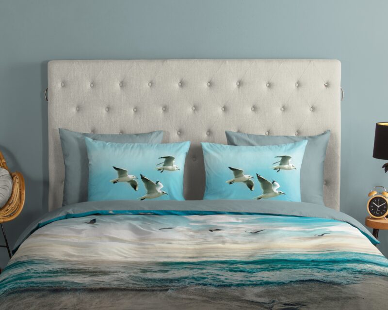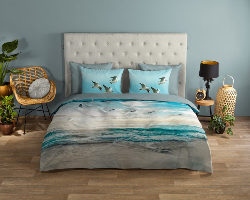Dekbedovertrek “Brisa” van Good Morning met strand/ zee, in de kleur “Aqua” is gemaakt van 100% katoen. Deze kwaliteit is ademend, vochtabsorberend en voelt zacht en soepel aan. Dit mooie dekbedovertrek fleurt iedere slaapkamer op en is geschikt voor ieder jaargetijde. Het katoenen dekbedovertrek is heerlijk koel in de zomer en geeft warmte in de winter.