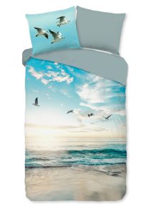 Good Morning Dekbedovertrek “strand/ zee” – Aqua – (140×200/220 cm) – Katoen