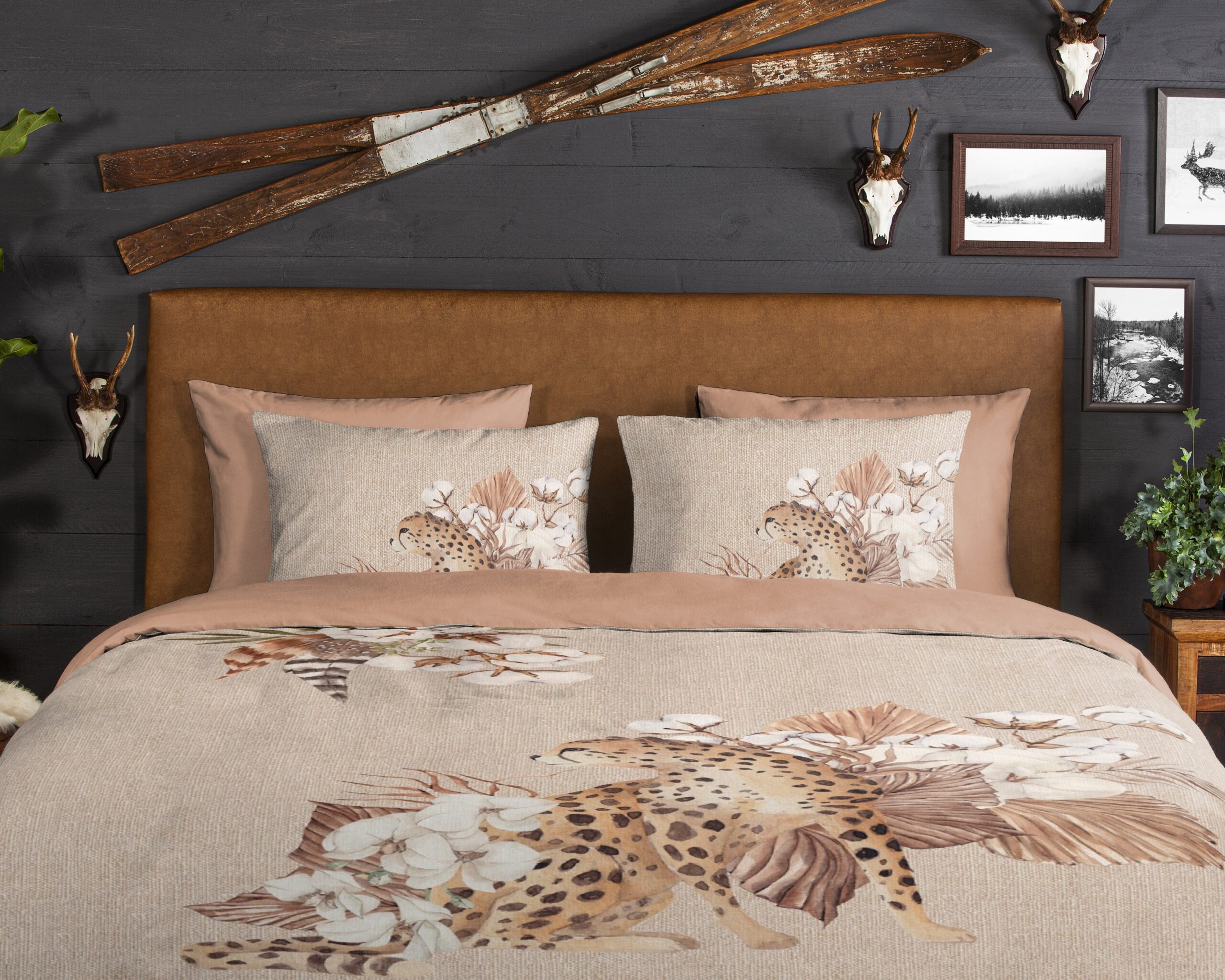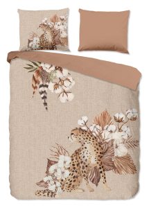 Good Morning Dekbedovertrek “tijger en bloemen” – Zand – (200×200/220 cm) – Katoen Flanel