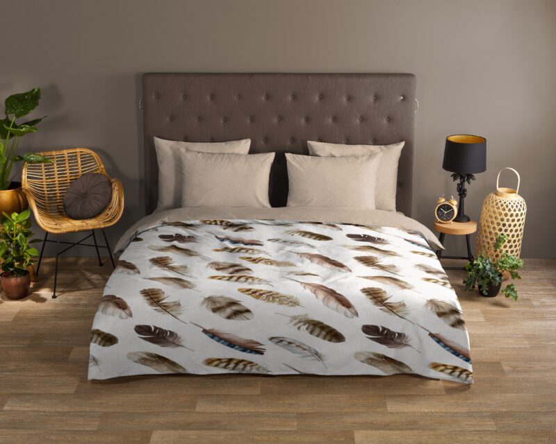 Dekbedovertrek “Fedra” van Good Morning met veren, in de kleur “Zand” is gemaakt van 100% katoen. Deze kwaliteit is ademend, vochtabsorberend en voelt zacht en soepel aan. Dit mooie dekbedovertrek fleurt iedere slaapkamer op en is geschikt voor ieder jaargetijde. Het katoenen dekbedovertrek is heerlijk koel in de zomer en geeft warmte in de winter.