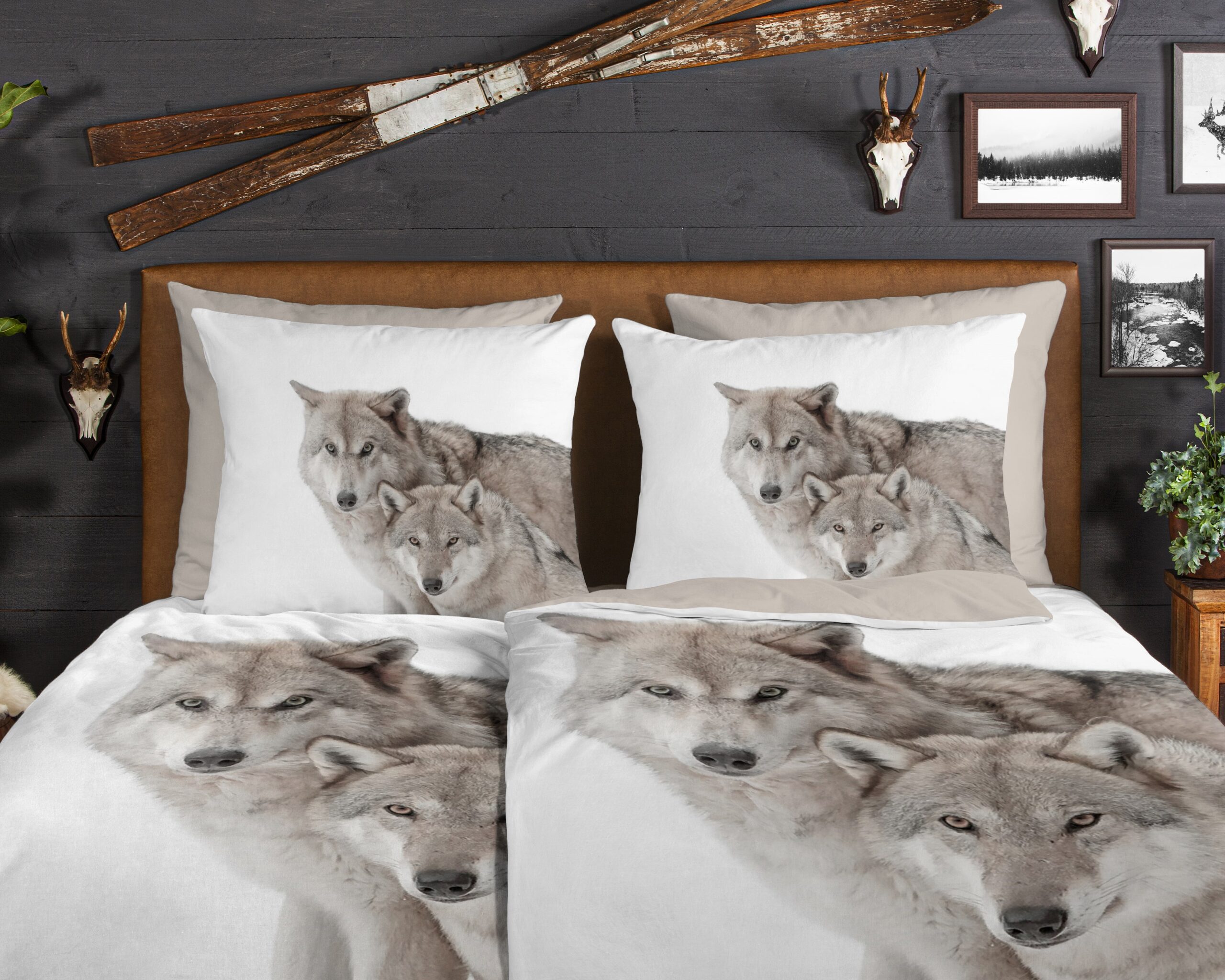 Good Morning Dekbedovertrek “wolven in de sneeuw” – Zand – (200×200 cm) – Katoen Flanel