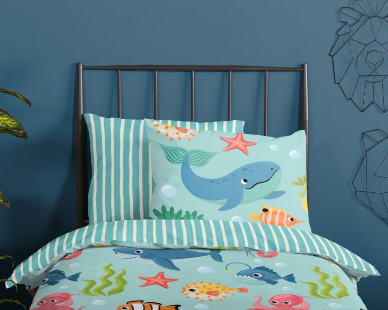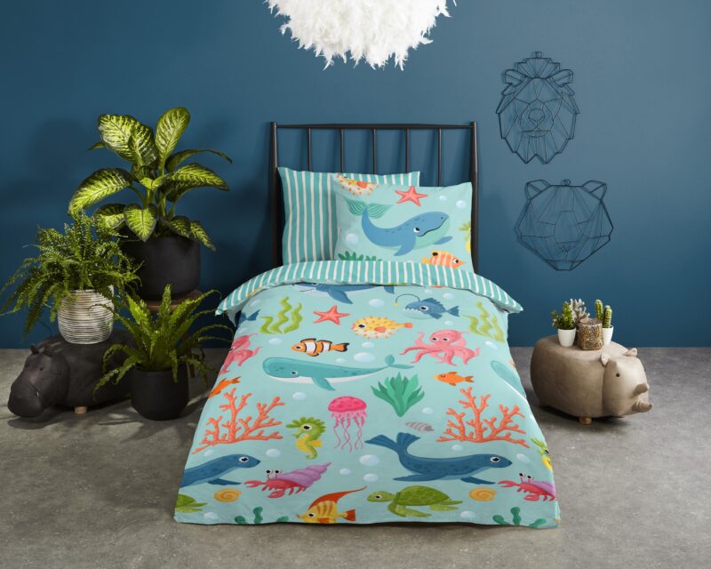 Good Morning Dekbedovertrek “zeedieren” – Aqua – (140×200 cm) – Katoen