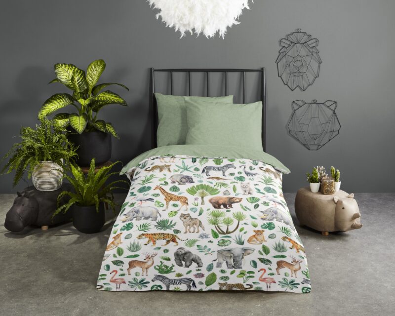 Kinderdekbedovertrek “Samba” van Good Morning met Afrikaanse dieren / big five, in de kleur “Multi” is gemaakt van 100% katoen. Deze kwaliteit is ademend, vochtabsorberend en voelt zacht en soepel aan. Dit leuke kinderdekbedovertrek is een toevoeging aan iedere kinderkamer en is geschikt voor ieder jaargetijde. Het katoenen dekbedovertrek is heerlijk koel in de zomer en geeft warmte in de winter.