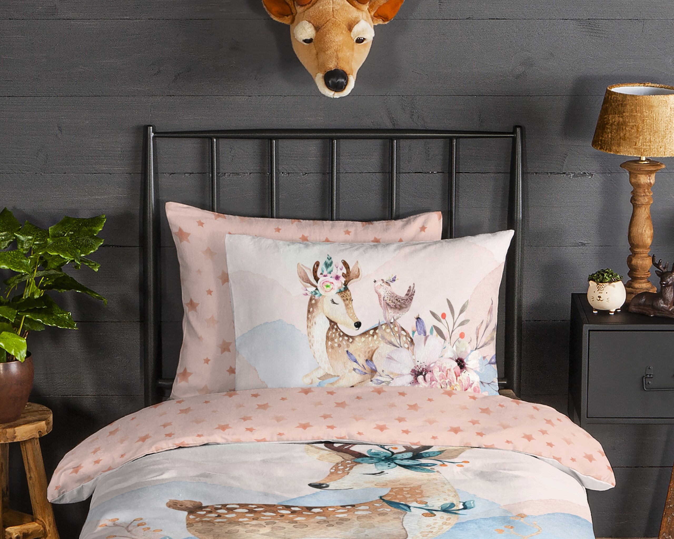 Flanellen Kinderdekbedovertrek “Josy” van Good Morning met bambi, in de kleur “Multi” is gemaakt van 100% geruwde 100% katoen/flanel. Doordat het katoen licht opgeruwd is, ontstaat er een zacht laagje. Deze warme, zachte stof is ademend en vochtabsorberend. Dit leuke kinderdekbedovertrek is een toevoeging aan iedere kinderkamer en is uitermate geschikt voor de koude wintermaanden.