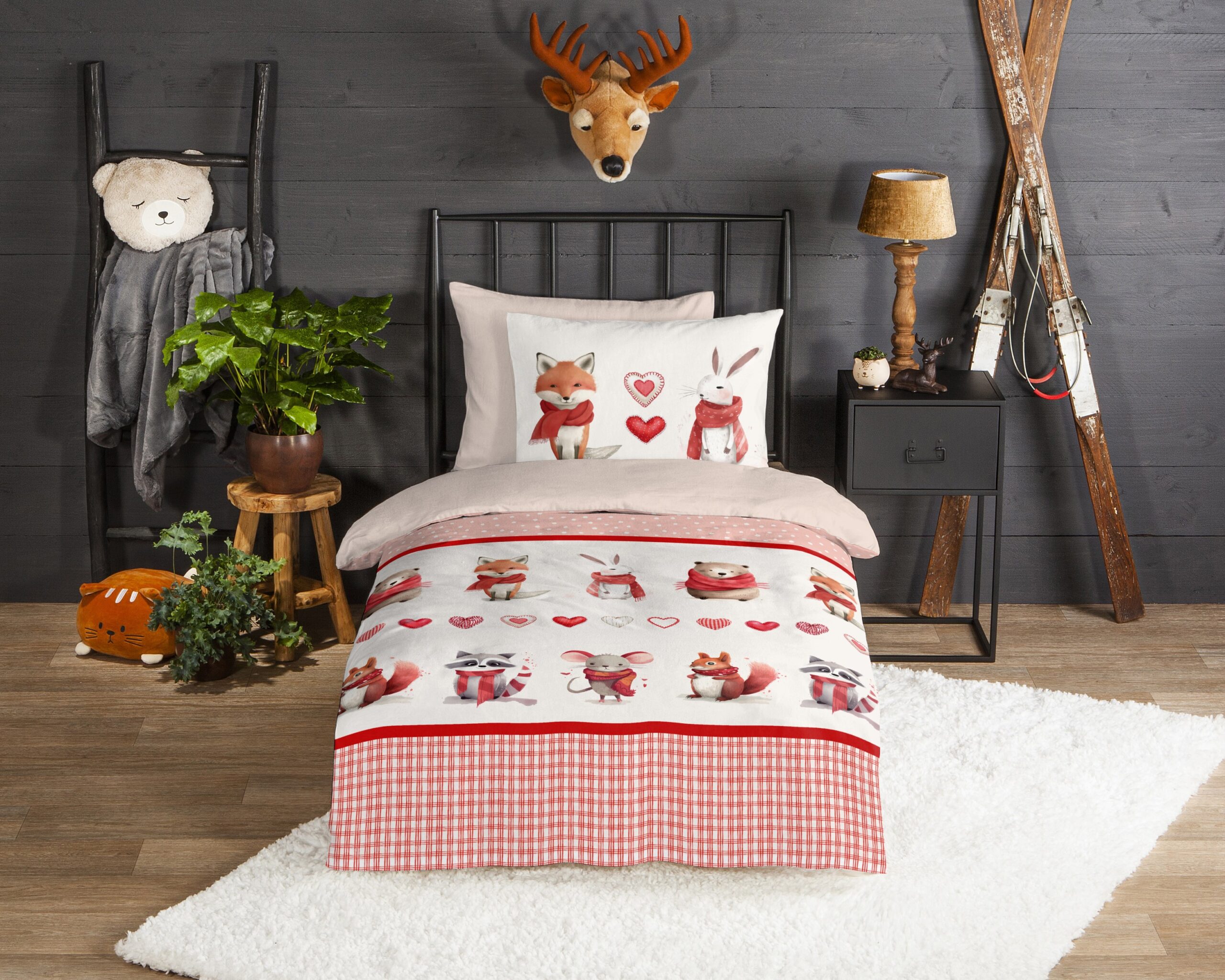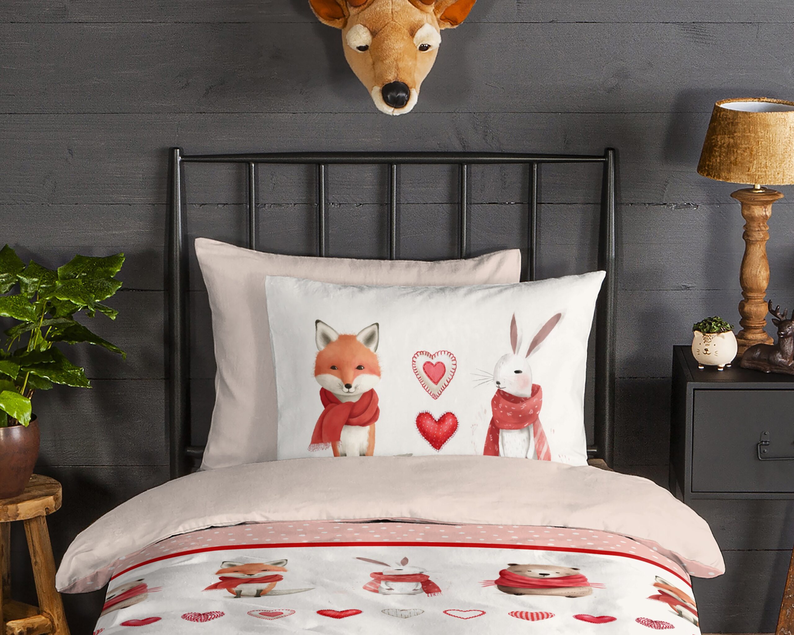 Flanellen Kinderdekbedovertrek “Timmy” van Good Morning met dieren met sjaal, in de kleur “Rood” is gemaakt van 100% geruwde 100% katoen/flanel. Doordat het katoen licht opgeruwd is, ontstaat er een zacht laagje. Deze warme, zachte stof is ademend en vochtabsorberend. Dit leuke kinderdekbedovertrek is een toevoeging aan iedere kinderkamer en is uitermate geschikt voor de koude wintermaanden.