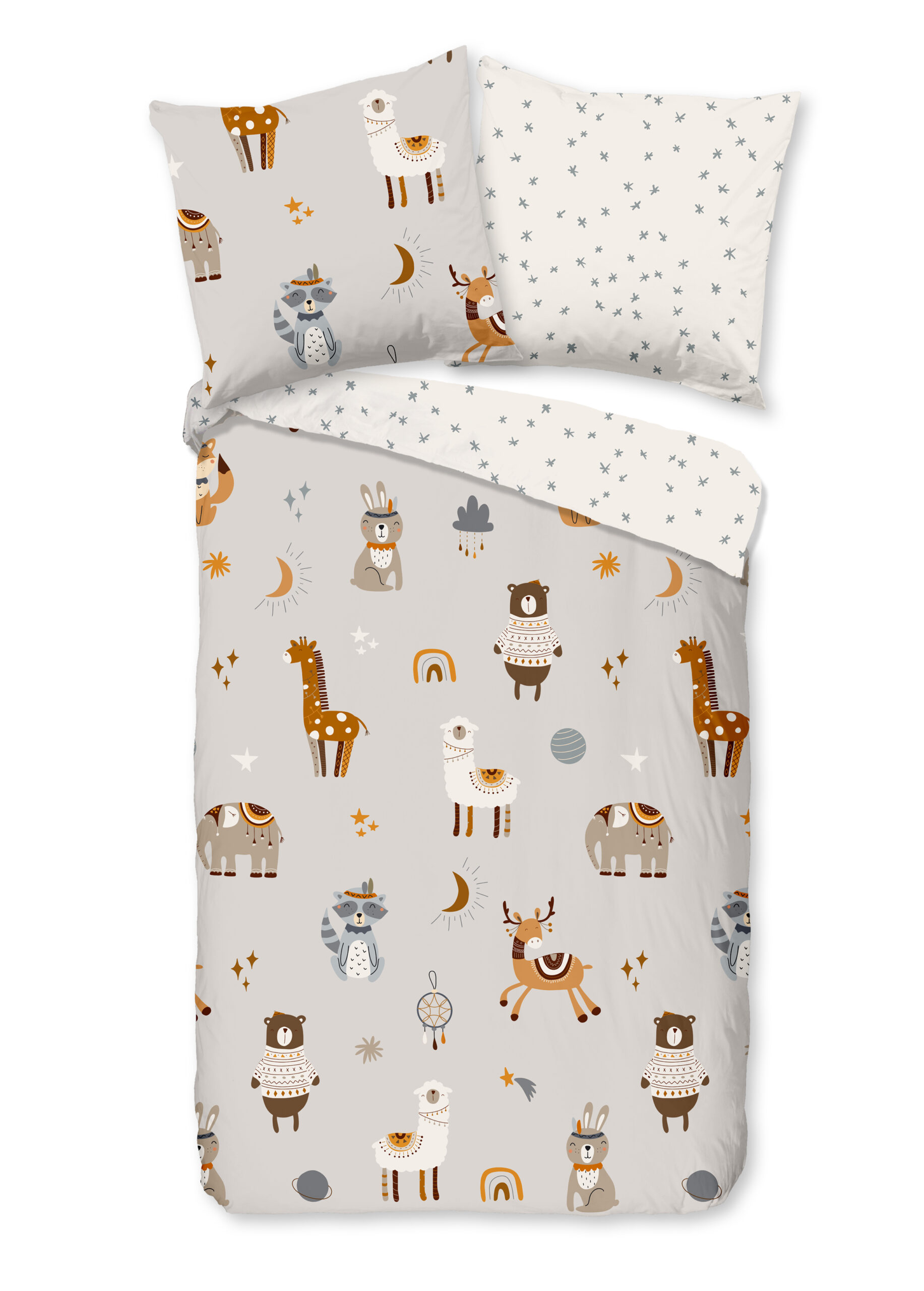 De set bestaat uit 1 kinderdekbedovertrek van 135×200 cm en 1 kussensloop van 80×80 cm, inclusief een YKK rits.