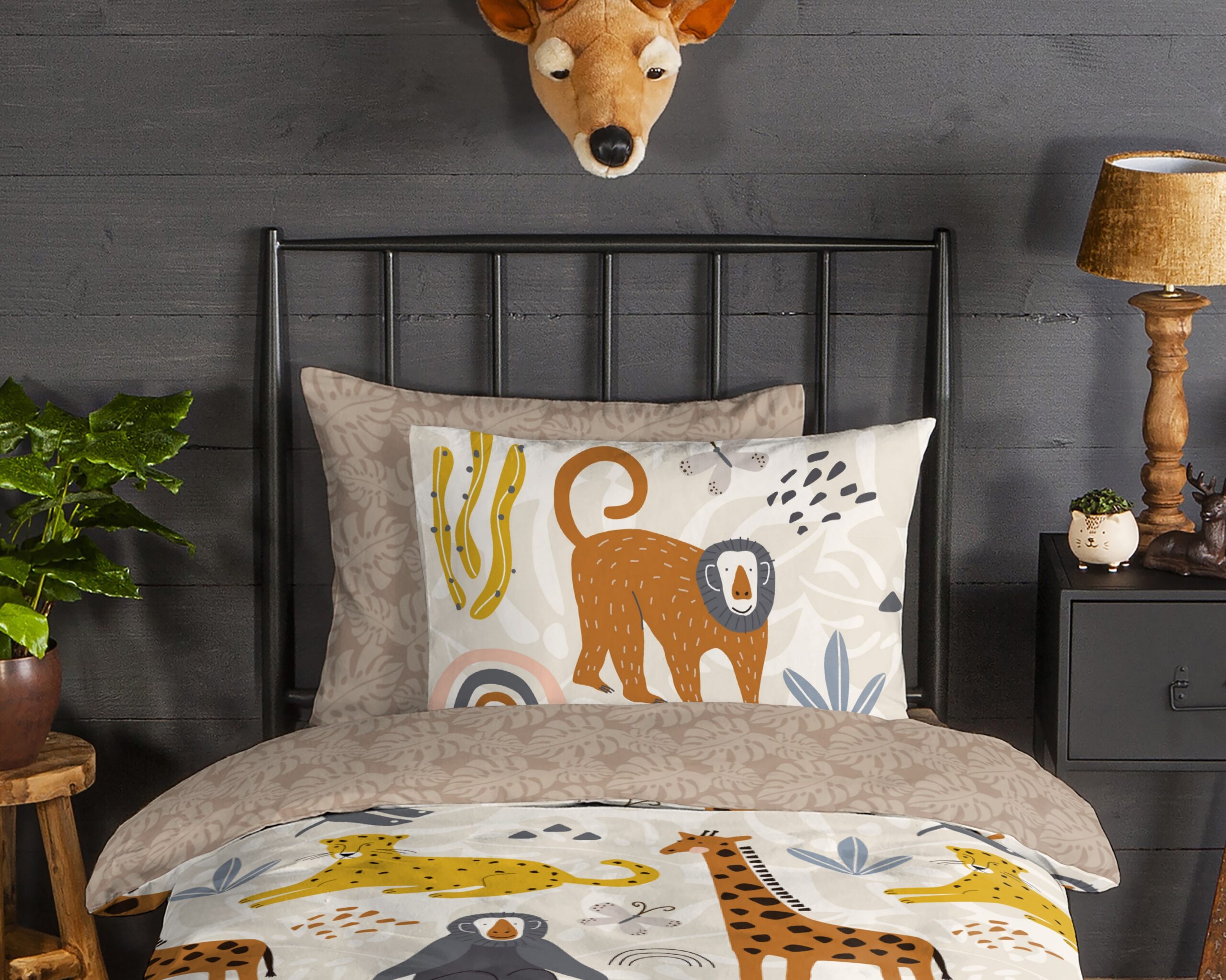 Flanellen Kinderdekbedovertrek “Jungle” van Good Morning met dieren, in de kleur “Multi” is gemaakt van 100% geruwde 100% katoen/flanel. Doordat het katoen licht opgeruwd is, ontstaat er een zacht laagje. Deze warme, zachte stof is ademend en vochtabsorberend. Dit leuke kinderdekbedovertrek is een toevoeging aan iedere kinderkamer en is uitermate geschikt voor de koude wintermaanden.