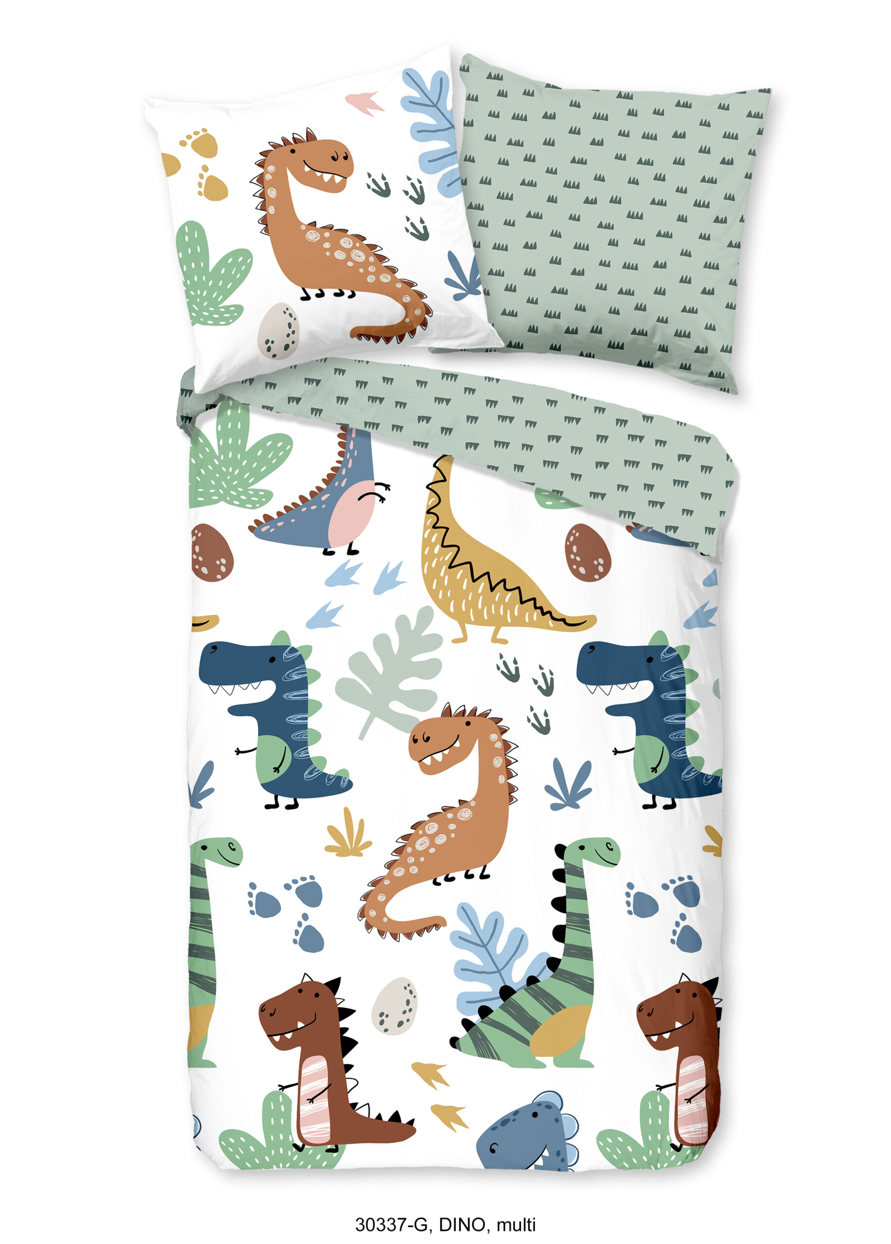Kinderdekbedovertrek “Dino” van Good Morning met dino’s, in de kleur “Multi” is gemaakt van 100% katoen. Deze kwaliteit is ademend, vochtabsorberend en voelt zacht en soepel aan. Dit leuke kinderdekbedovertrek is een toevoeging aan iedere kinderkamer en is geschikt voor ieder jaargetijde. Het katoenen dekbedovertrek is heerlijk koel in de zomer en geeft warmte in de winter.