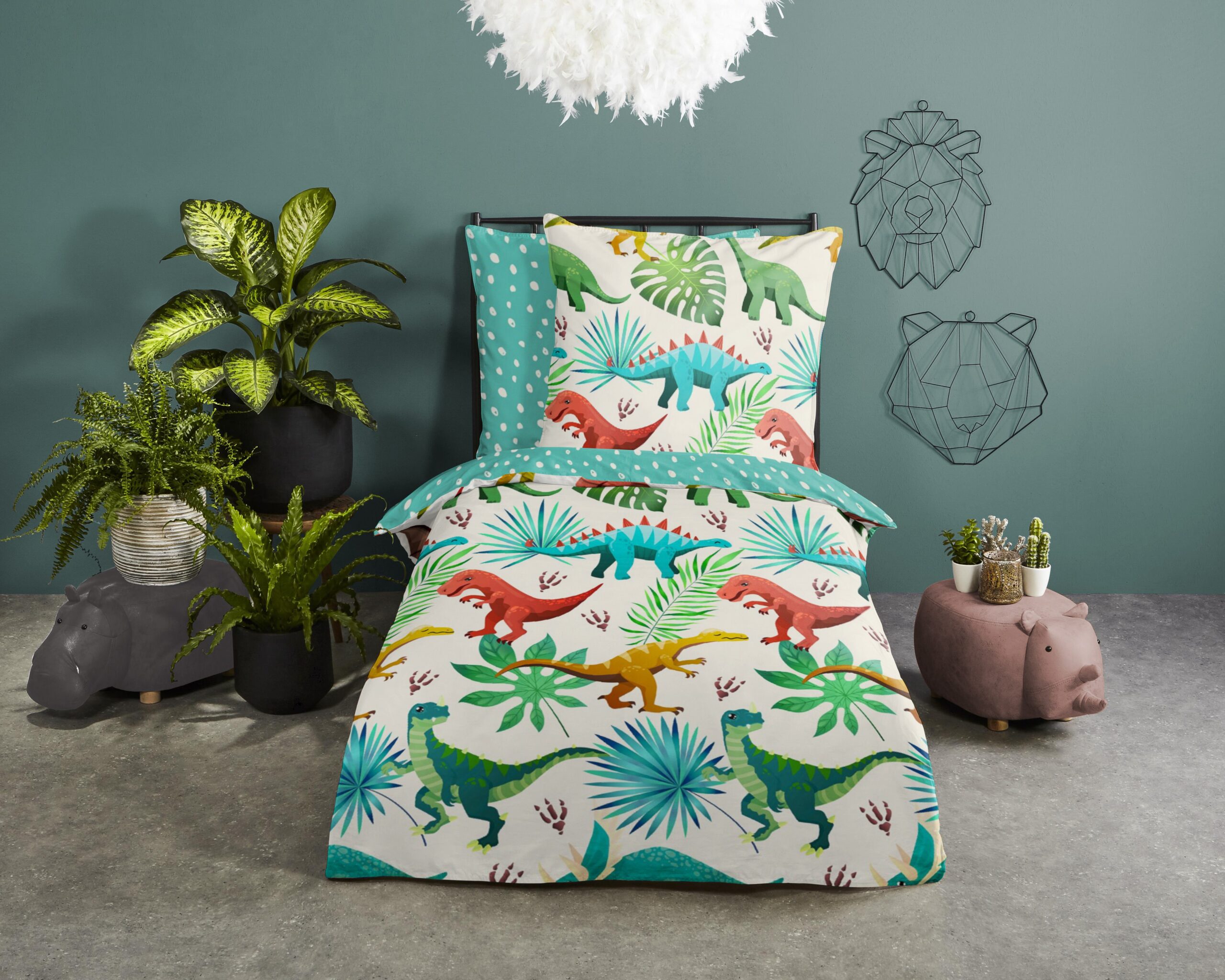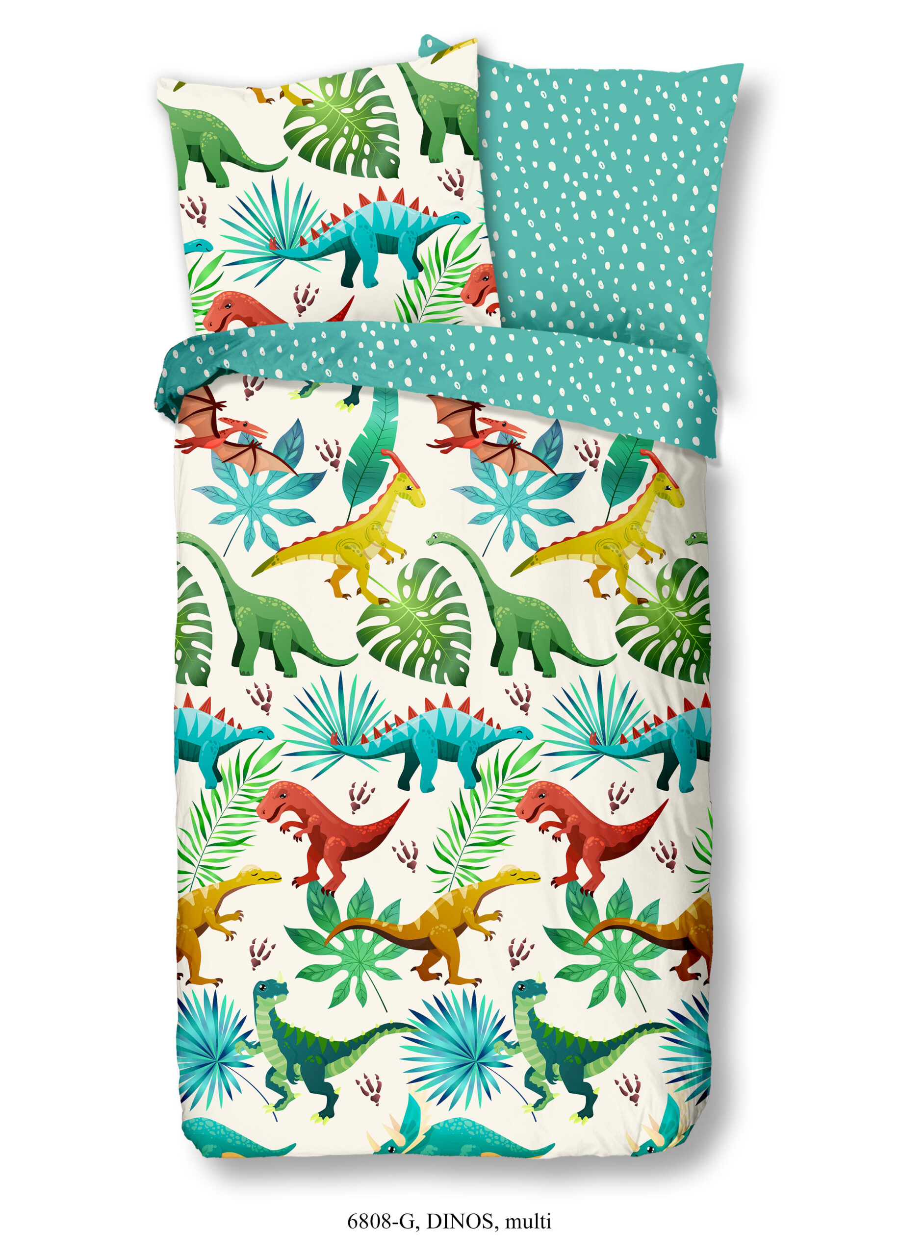 Kinderdekbedovertrek “Dinos” van Good Morning met dinosaurussen, in de kleur “Multi” is gemaakt van 100% katoen. Deze kwaliteit is ademend, vochtabsorberend en voelt zacht en soepel aan. Dit leuke kinderdekbedovertrek is een toevoeging aan iedere kinderkamer en is geschikt voor ieder jaargetijde. Het katoenen dekbedovertrek is heerlijk koel in de zomer en geeft warmte in de winter.