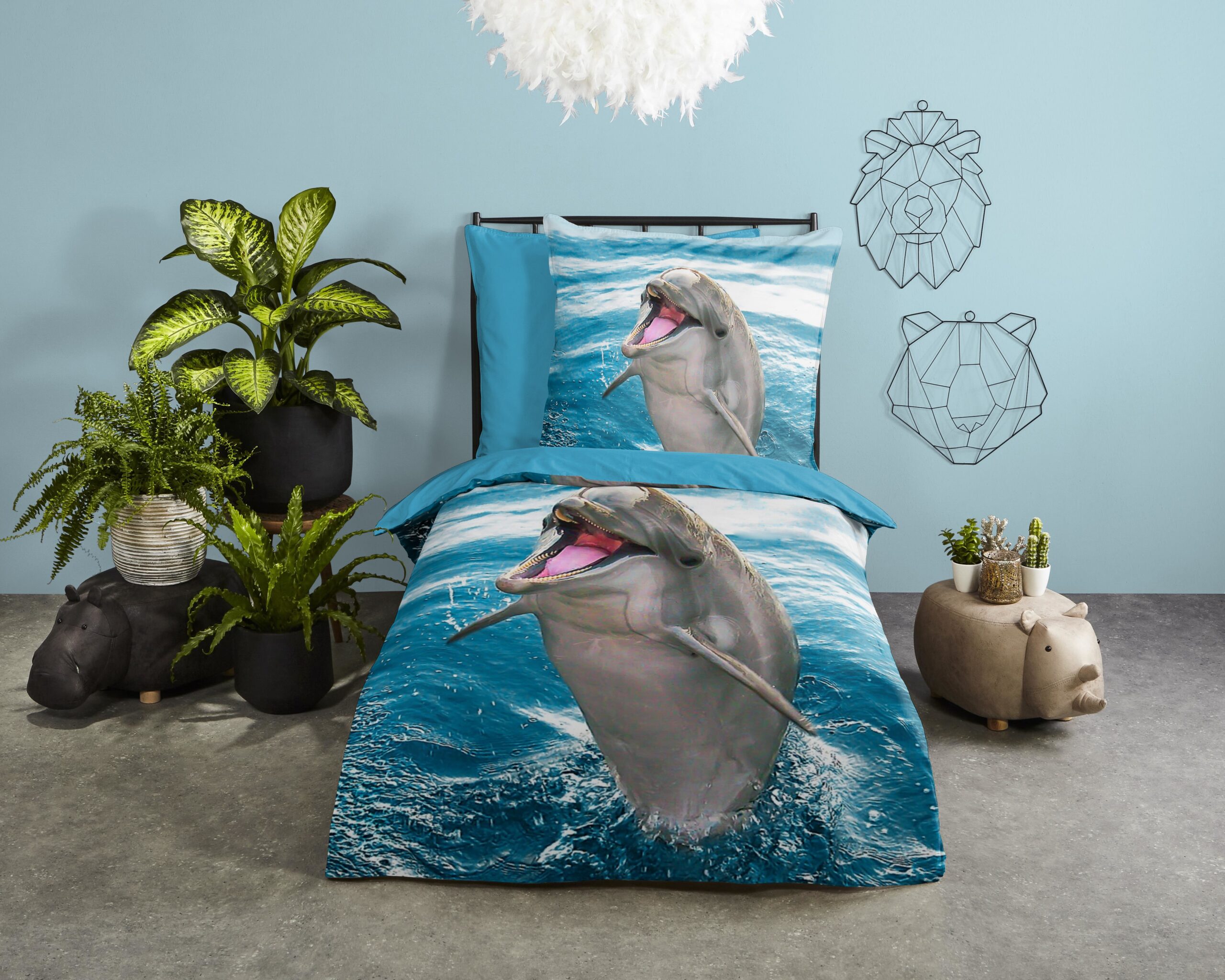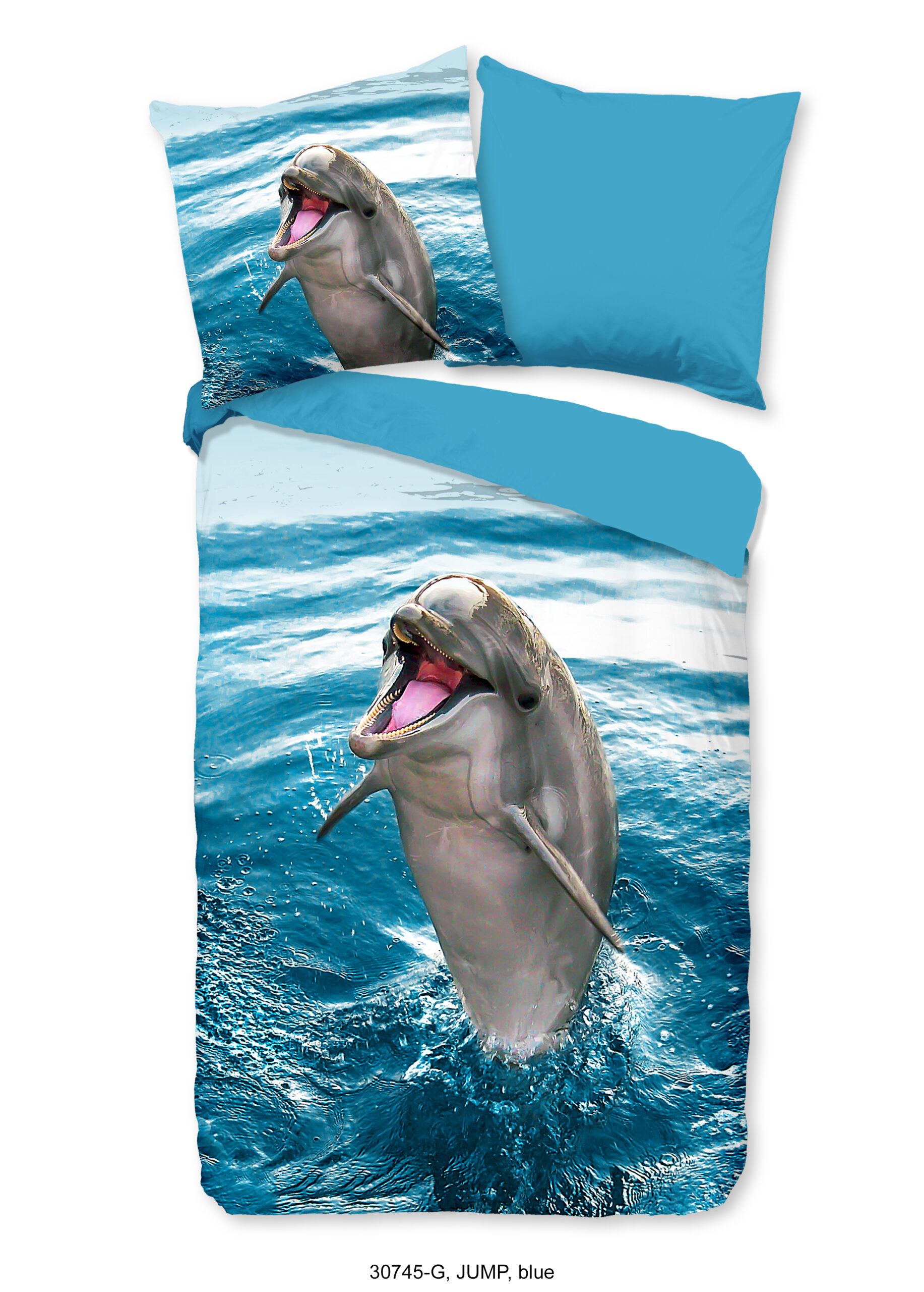 Kinderdekbedovertrek “Jump” van Good Morning met dolfijn, in de kleur “Blauw” is gemaakt van 100% katoen. Deze kwaliteit is ademend, vochtabsorberend en voelt zacht en soepel aan. Dit leuke kinderdekbedovertrek is een toevoeging aan iedere kinderkamer en is geschikt voor ieder jaargetijde. Het katoenen dekbedovertrek is heerlijk koel in de zomer en geeft warmte in de winter.