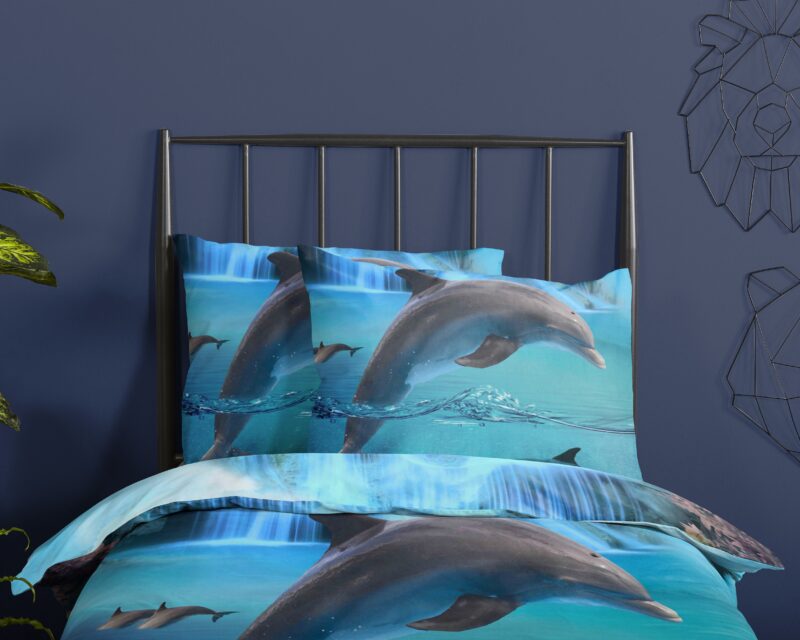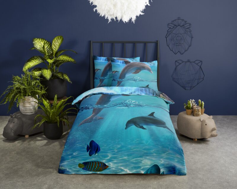 Kinderdekbedovertrek “Will” van Good Morning met dolfijnen, in de kleur “Blauw” is gemaakt van 100% katoen. Deze kwaliteit is ademend, vochtabsorberend en voelt zacht en soepel aan. Dit leuke kinderdekbedovertrek is een toevoeging aan iedere kinderkamer en is geschikt voor ieder jaargetijde. Het katoenen dekbedovertrek is heerlijk koel in de zomer en geeft warmte in de winter.