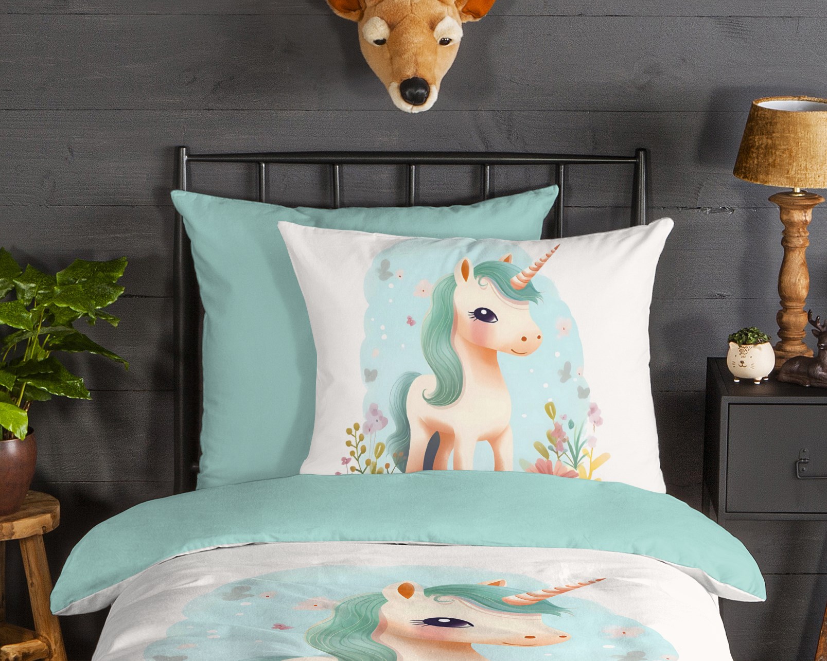 Good Morning Kinderdekbedovertrek “eenhorn” – Multi – (135×200 cm) – Katoen Flanel