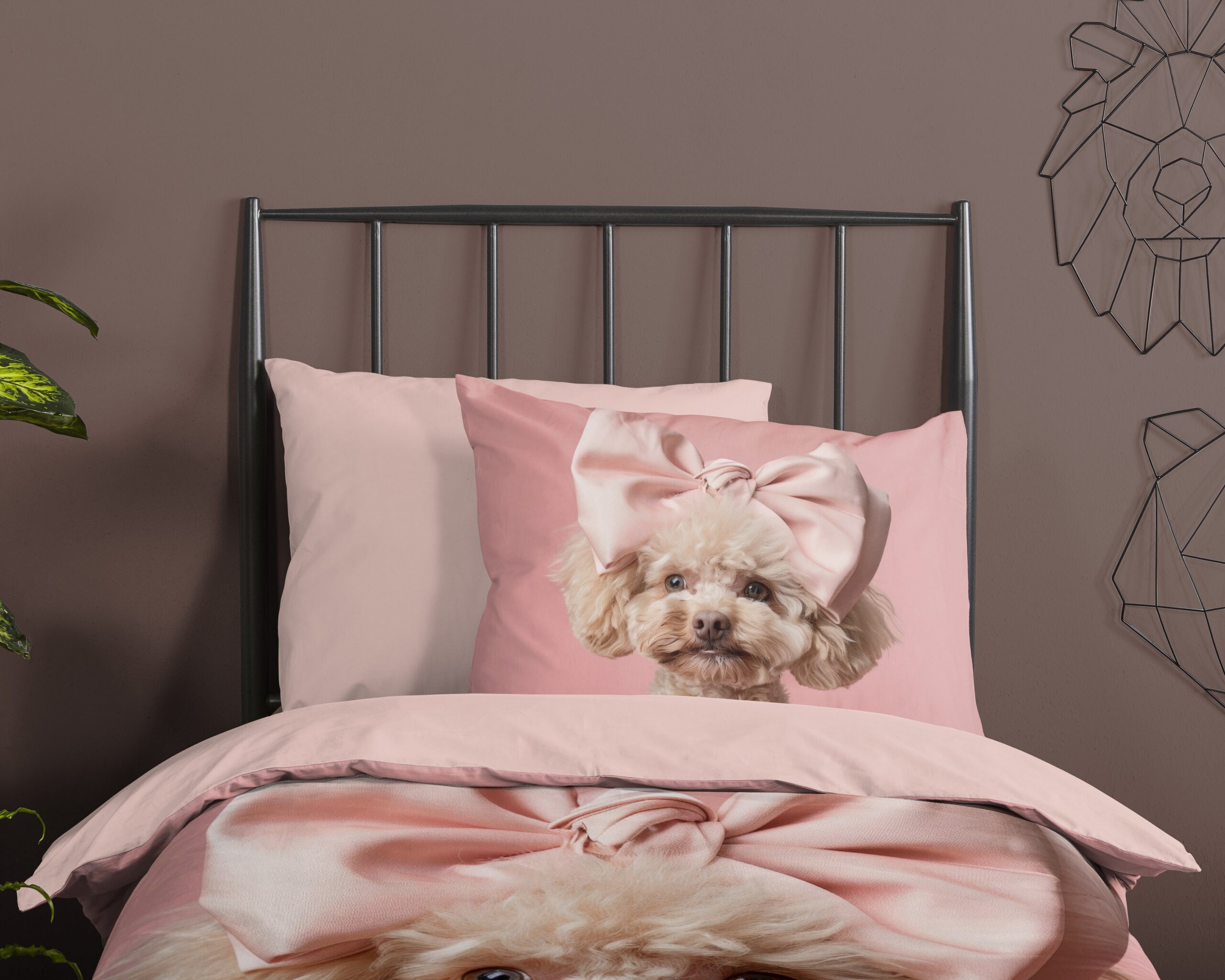 Good Morning Kinderdekbedovertrek “hond/ poedel” – Roze – (140×200/220 cm) – Katoen