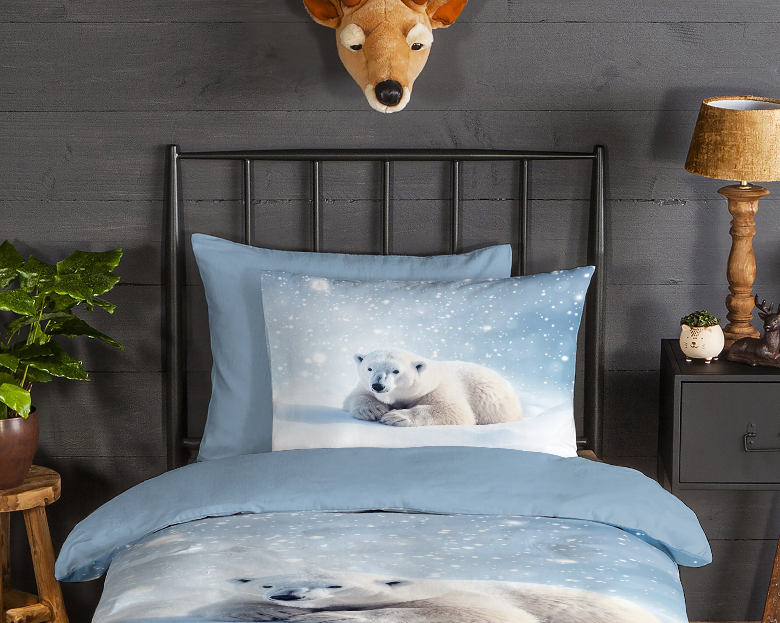 Flanellen Kinderdekbedovertrek “Esben” van Good Morning met ijsbeer, in de kleur “Blauw” is gemaakt van 100% geruwde 100% katoen/flanel. Doordat het katoen licht opgeruwd is, ontstaat er een zacht laagje. Deze warme, zachte stof is ademend en vochtabsorberend. Dit leuke kinderdekbedovertrek is een toevoeging aan iedere kinderkamer en is uitermate geschikt voor de koude wintermaanden.